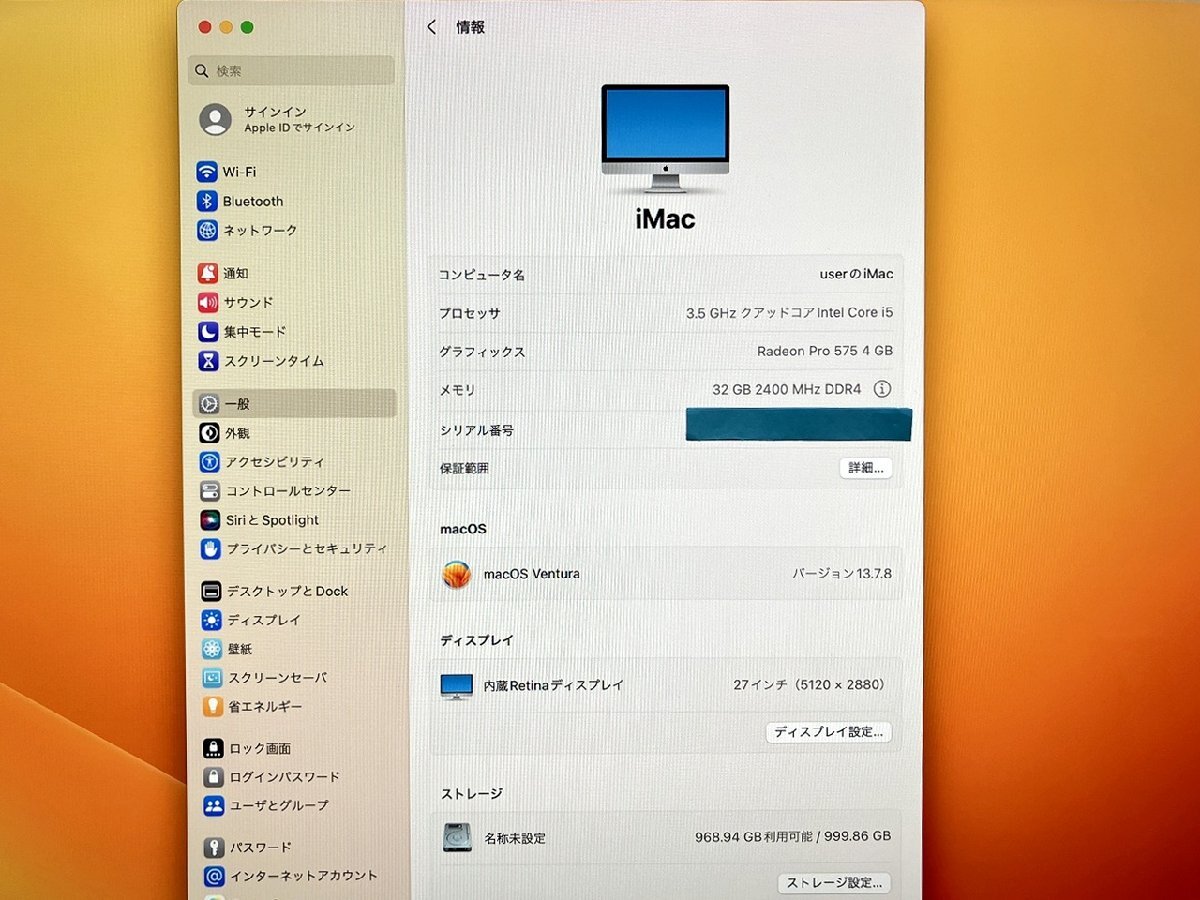 | 品名 | iMac "Core i5" 3.5 27" (5K, Mid-2017) |