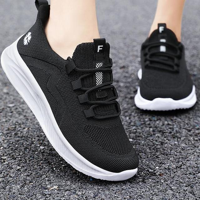 ★スニーカー レディース メッシュ レディース靴 スポーツ アウトドア 春秋 軽量 散歩シューズ 通気性 おしゃれ 婦人靴 ブラック23.5cm