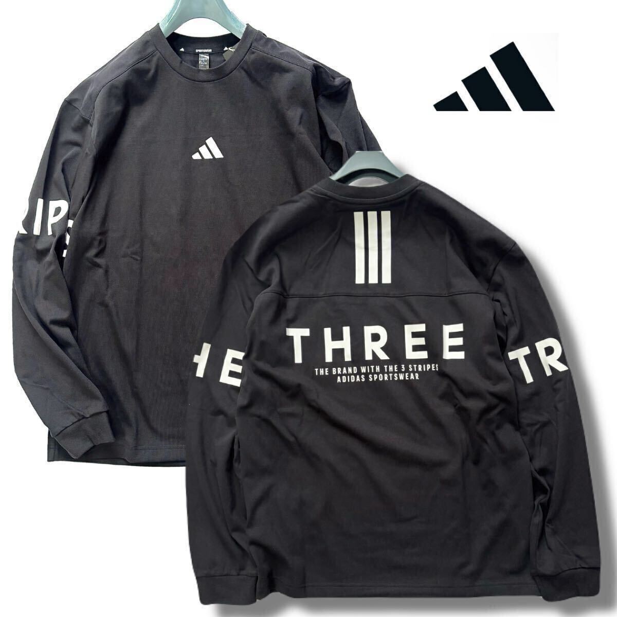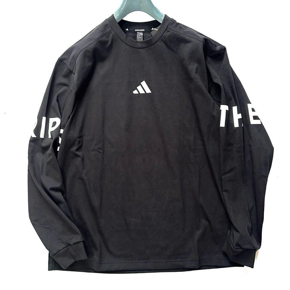 ☆152新品【メンズL】黒 adidas アディダス ゴルフに最適 背面BIGロゴ 厚手 クルーネック ワーディング 長袖 シャツ
