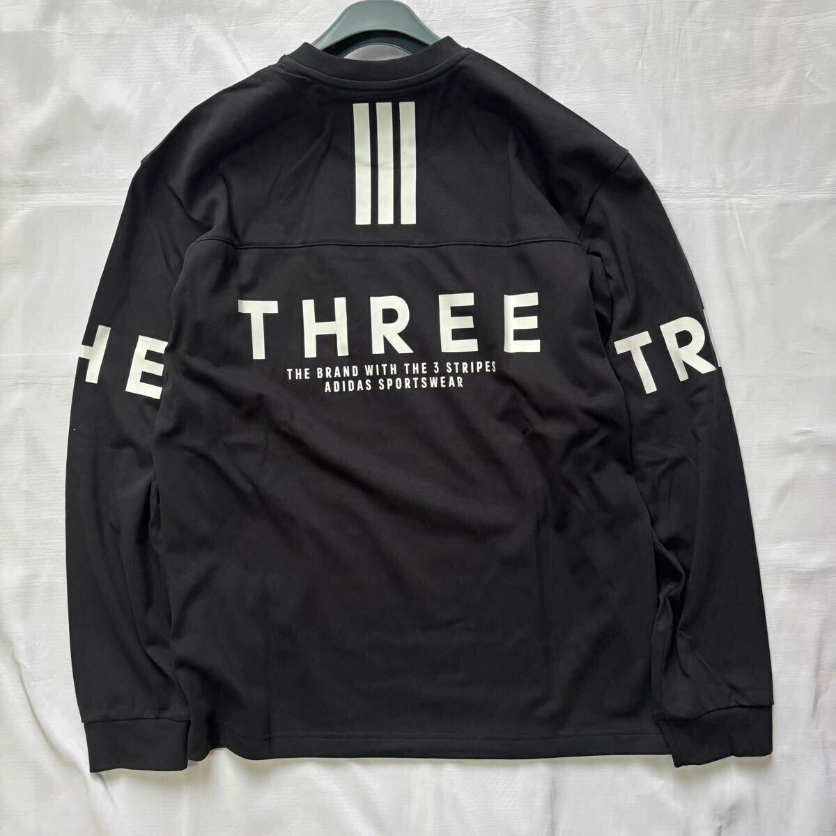 ●背面と袖に大きな「THREE STRIPES」の文字グラフィック
