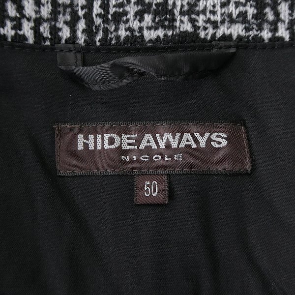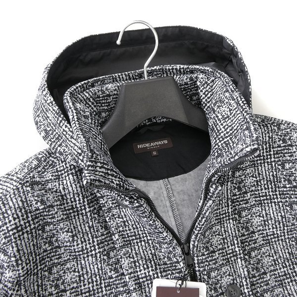 ニコル正規品 新品 未使用 紙タグあり 50サイズ(XLサイズ相当) ※写真は別サイズを使用している場合がございます※ ※商品に記載されたサイズ・寸法です※ 肩幅51cm 身幅57cm 袖丈62cm 着丈73cm ※伸縮性のある素材の為、多少の誤差が生じる場合がございます※ 表地:ポリエステル100% 裏地:ポリエステル100% 別布:綿100% ブラック×ホワイト |