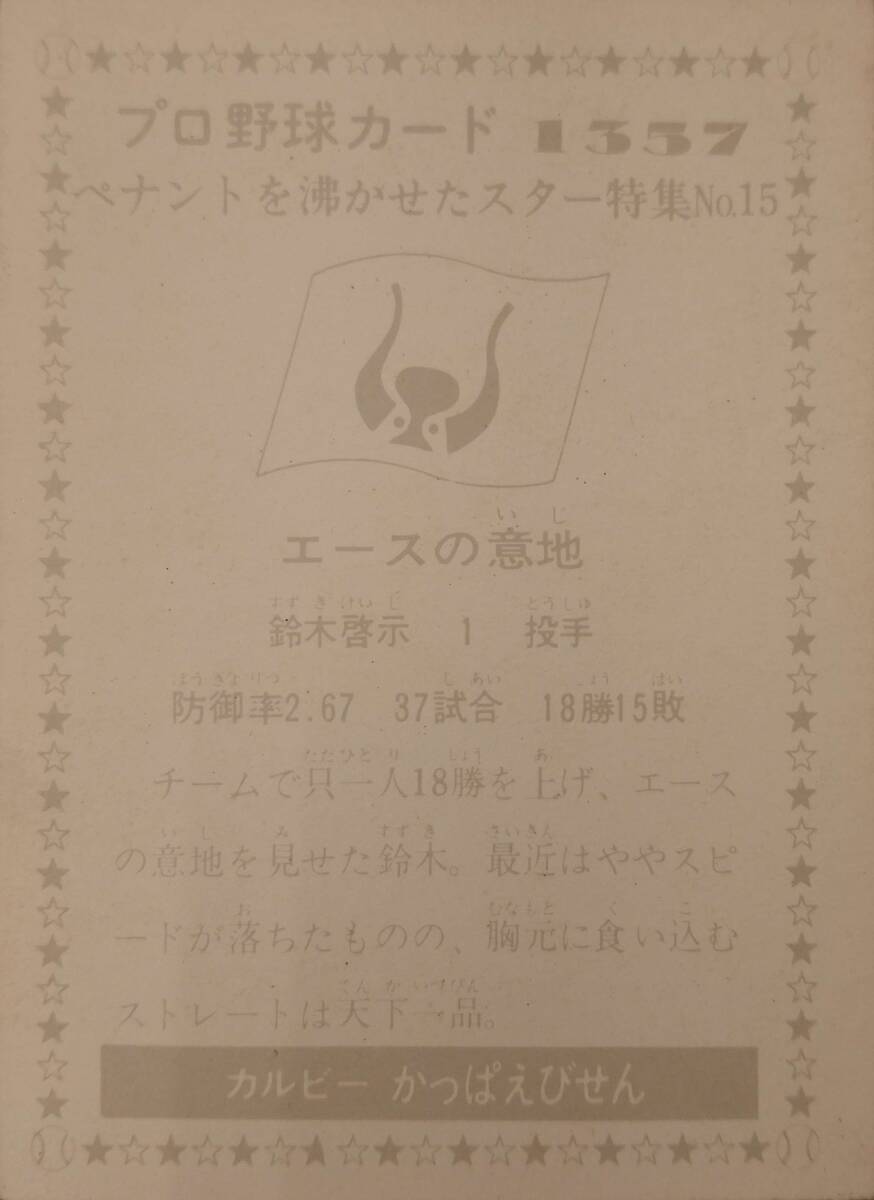 【511カード】1976年 近鉄バファローズ 鈴木啓示 1357 カルビープロ野球