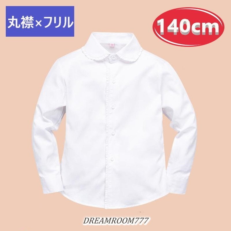 綿100% 丸襟×フリル ブラウス【140cm】ワイシャツ 白シャツ 学生服 フォーマル 冠婚葬祭 制服