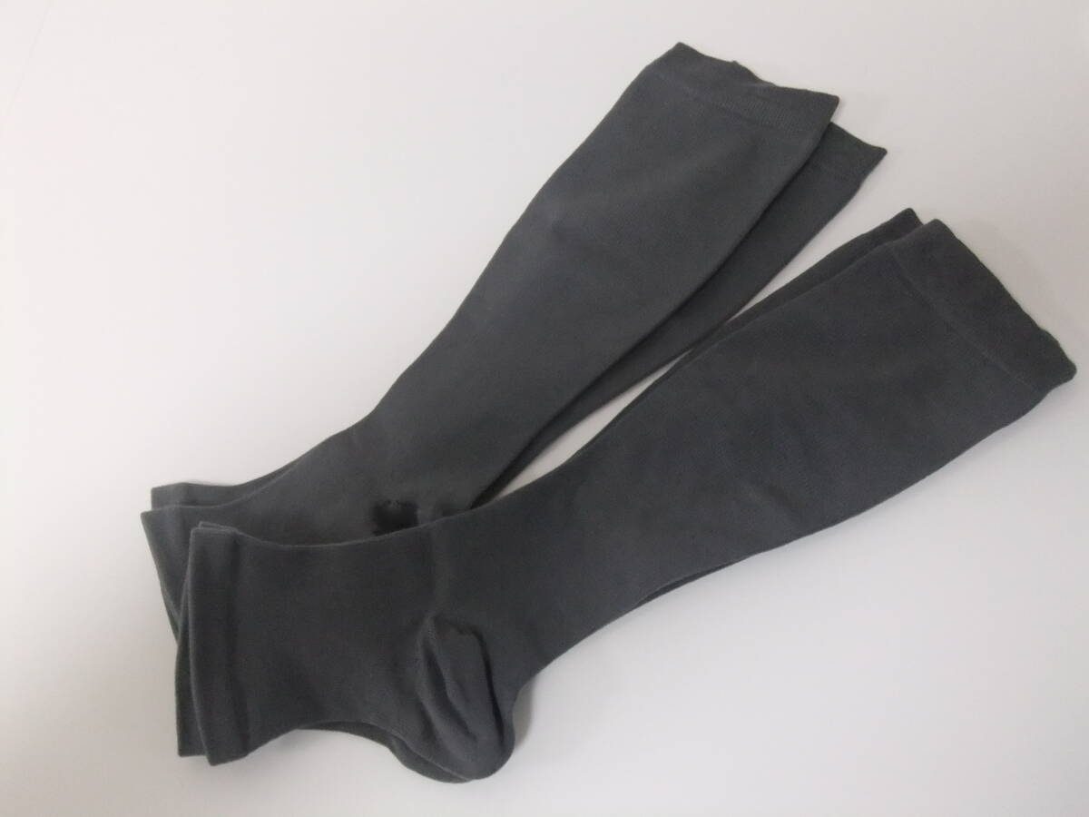 204 未着用品 着圧ハイソックス2足 オープントゥ チャコールグレー ひざ下 シルク混 弱~中圧 おやすみ専用 日本製