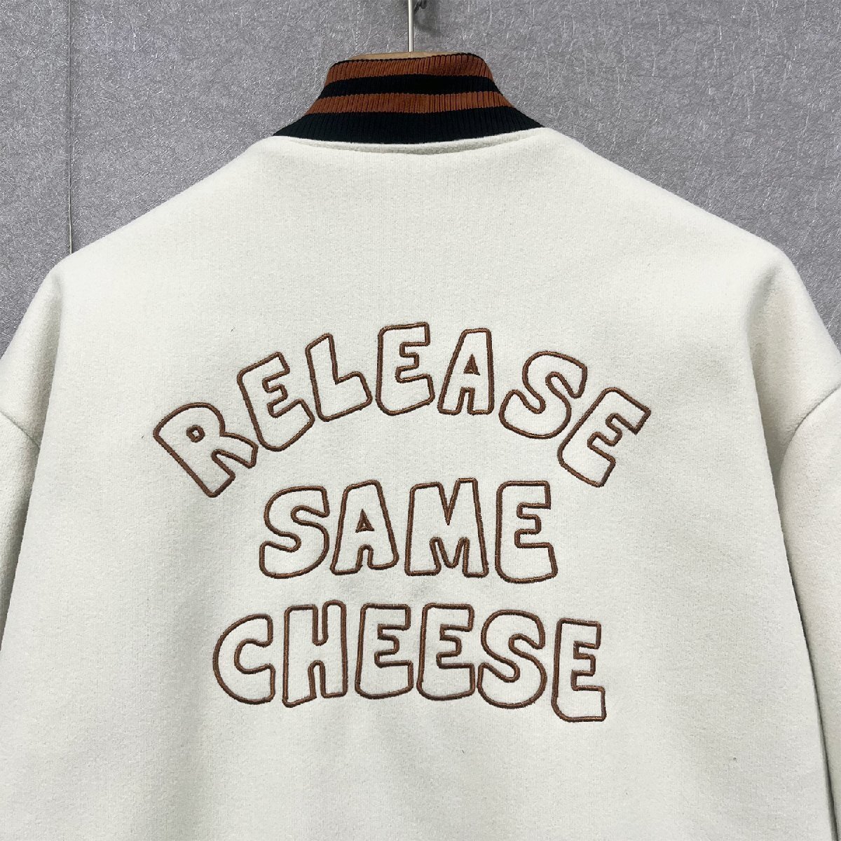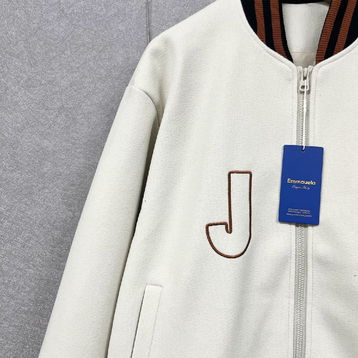 個性・スタジャン 定価7万◆Emmauela・イタリア・ミラノ発◆カシミア100% ソフト 英字刺繍 ブルゾン カジュアル アメカジ 普段着 XL/50