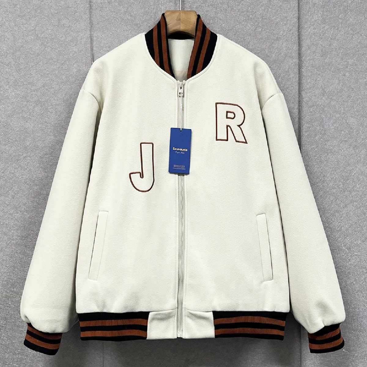 個性・スタジャン 定価7万◆Emmauela・イタリア・ミラノ発◆カシミア100% ソフト 保温 英字刺繍 ブルゾン カジュアル アメカジ 普段着 XL/50サイズ