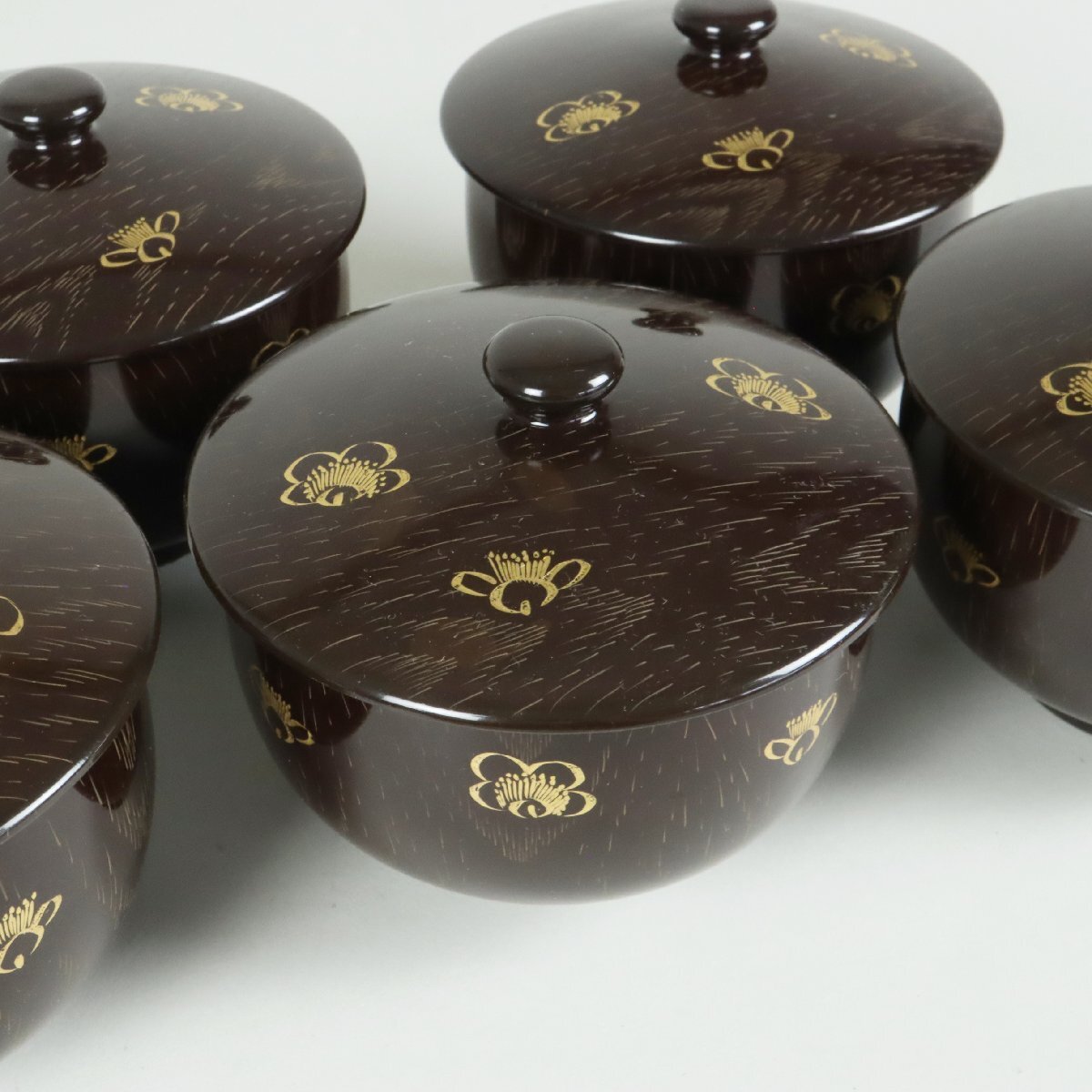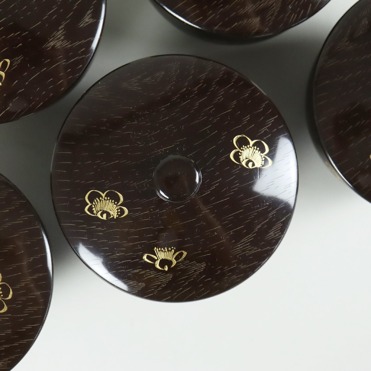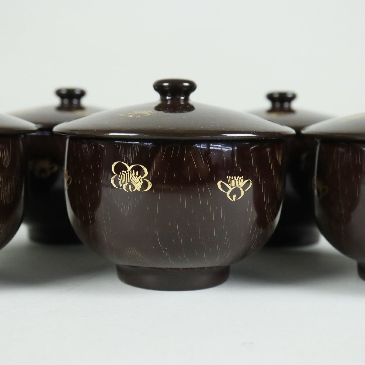 【古陶情趣】現代 天然木本漆 鳥安謹製 梅蒔絵 御湯呑 5客 料亭 懐石 旅館 日本料理 居酒屋