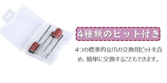 電動ネイルファイル ジェルネイルのオフ 35000RPM/分 電動ファイルドリル 正逆回転 4枚ビット付き 電動ネイルケアセット