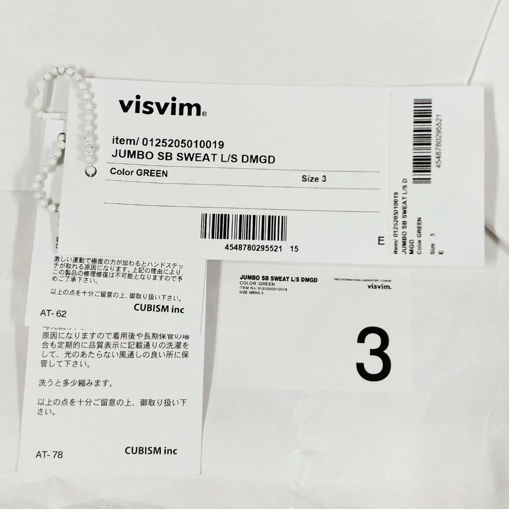 商品名 VISVIM ビズビム 品番 0125205010019 JUMBO SB SWEAT L/S DSMG スウェット グリーン サイズ3 正規品 / 52846