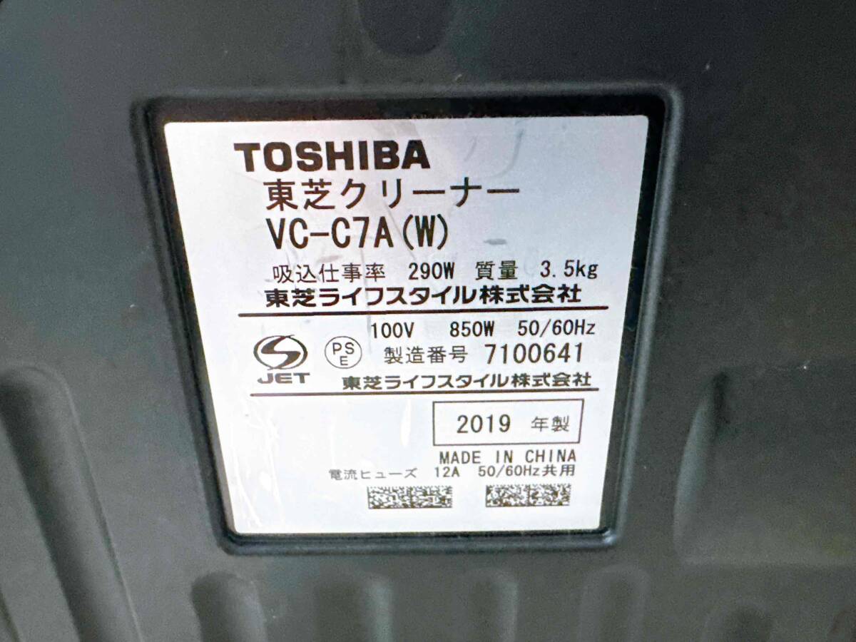 (ソ2322) VC-C7A(W) TOSHIBA 東芝クリーナー 電気掃除機 2019年製 通電確認済み 中古品
