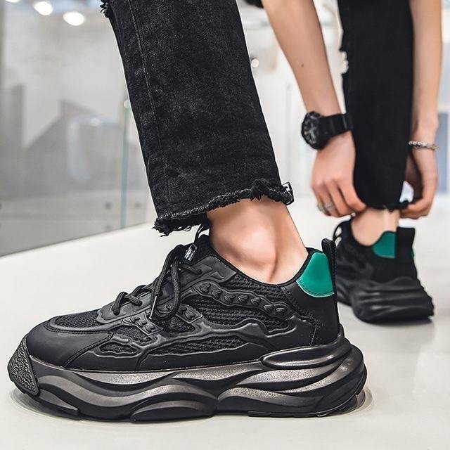 スニーカー ランニングシューズ メンズ メンズシューズ メッシュ スポーツ 運動靴 履き心地 歩きやすい 厚底 ブラック 25cm