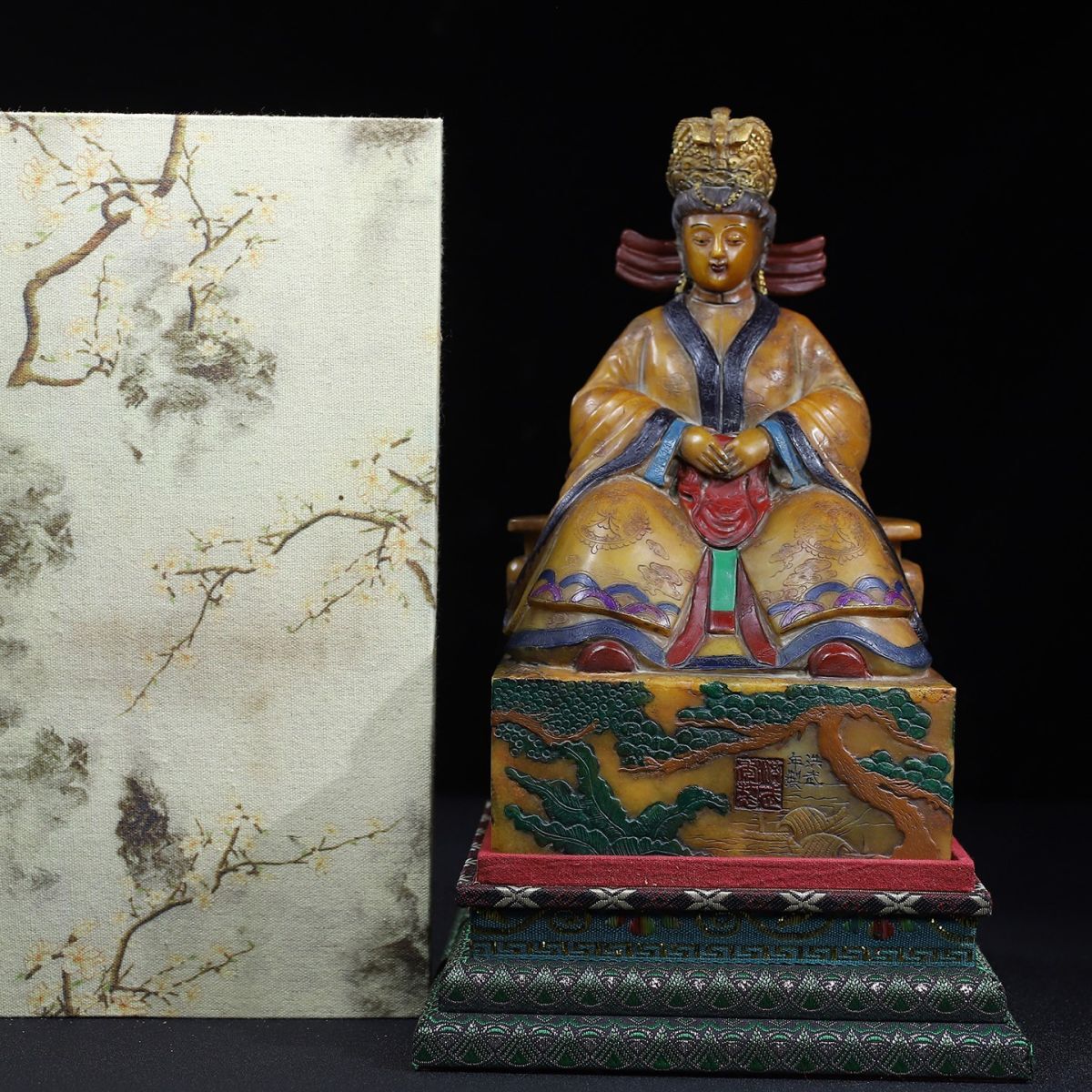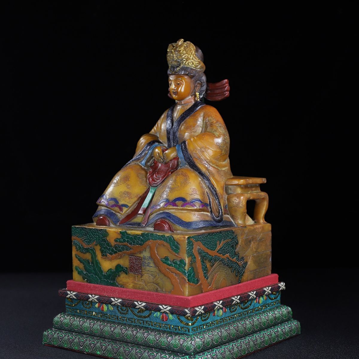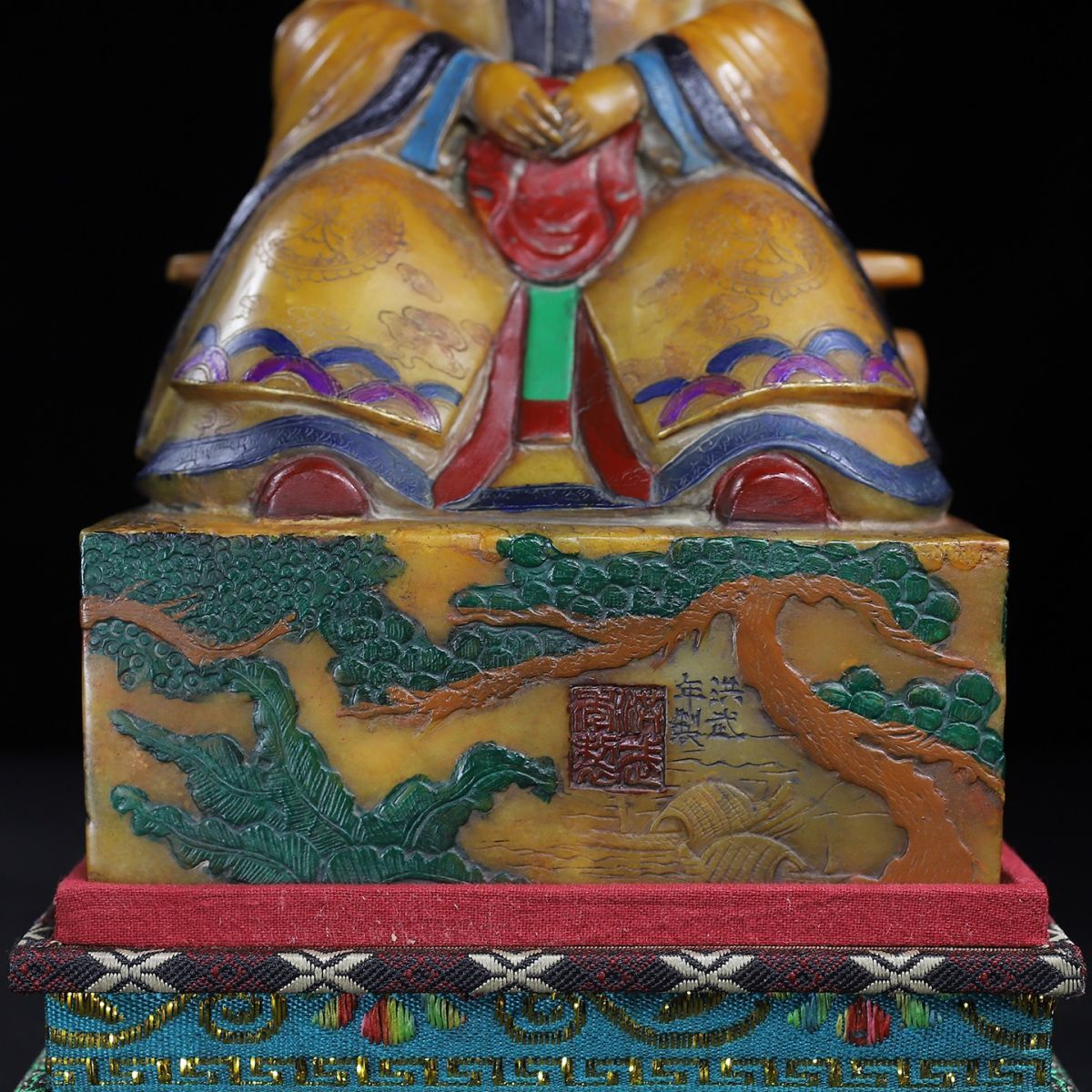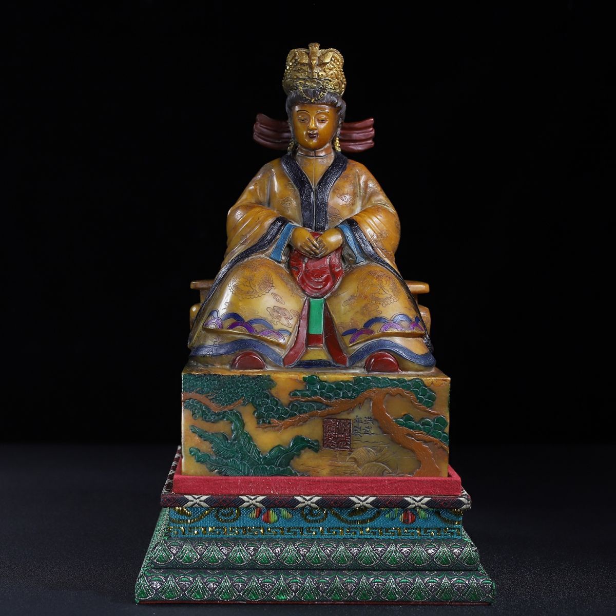 永し 明時代 洪武年製 壽山石 田黄石彫 彩絵馬皇后像 印章 印鑑 極細工 置物擺件 古美術品 時代物 古董品 収集 旧家蔵出 中国唐物 7016g