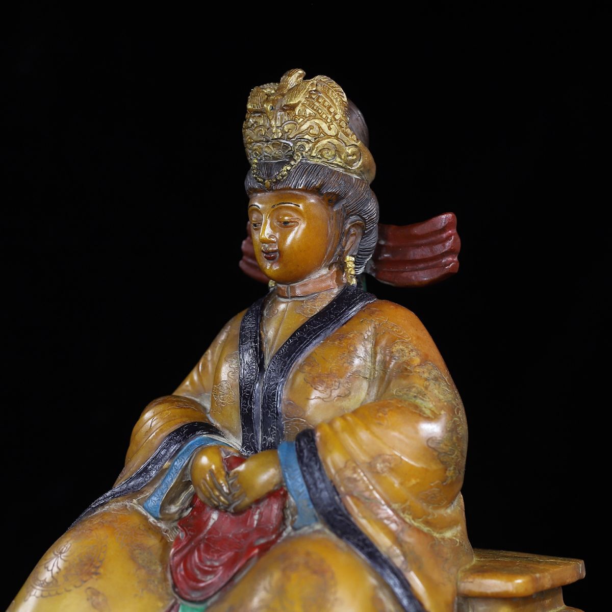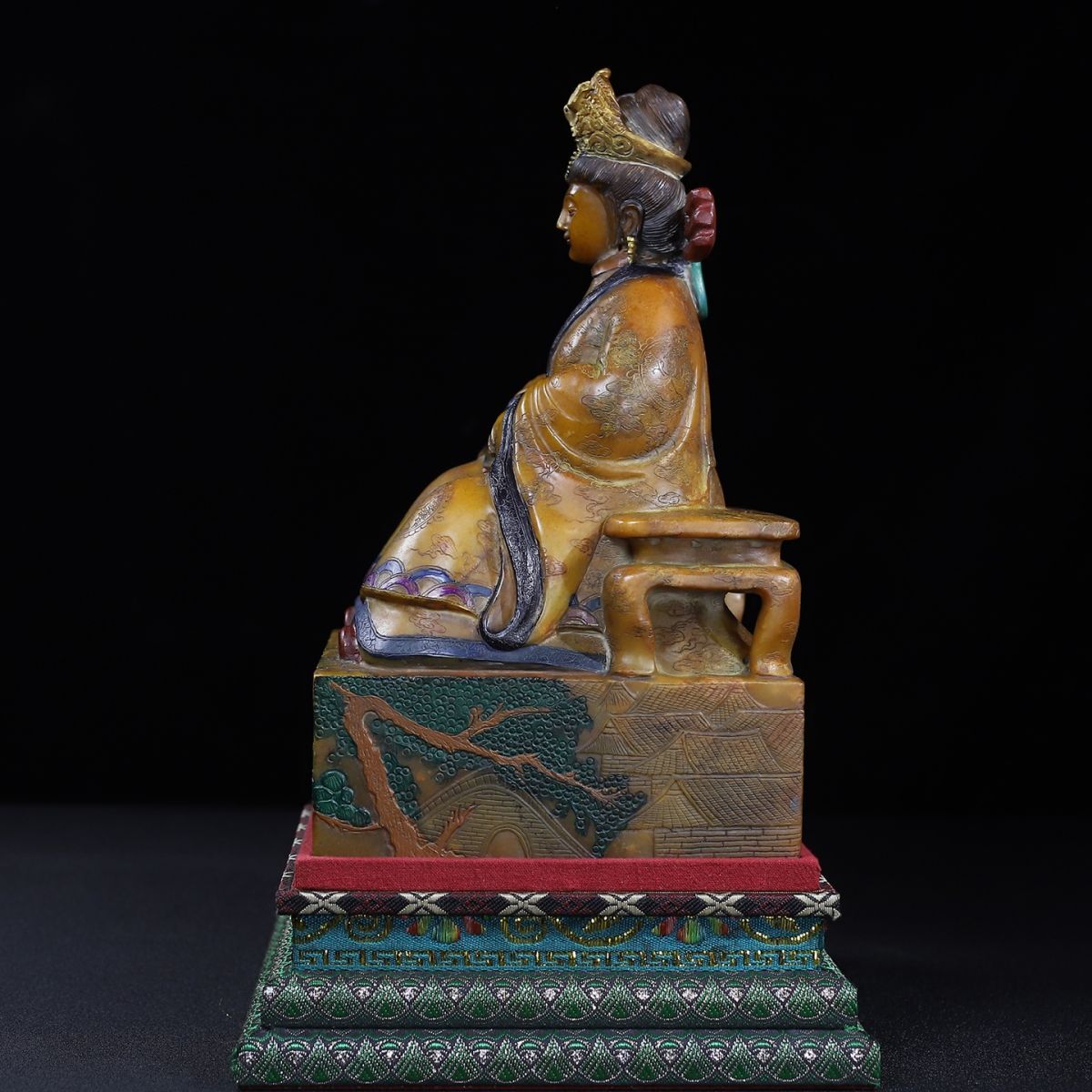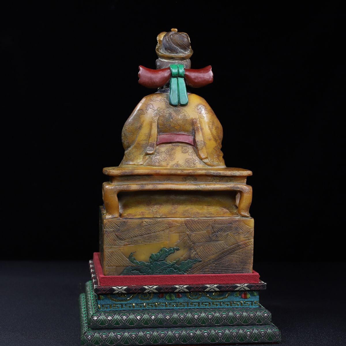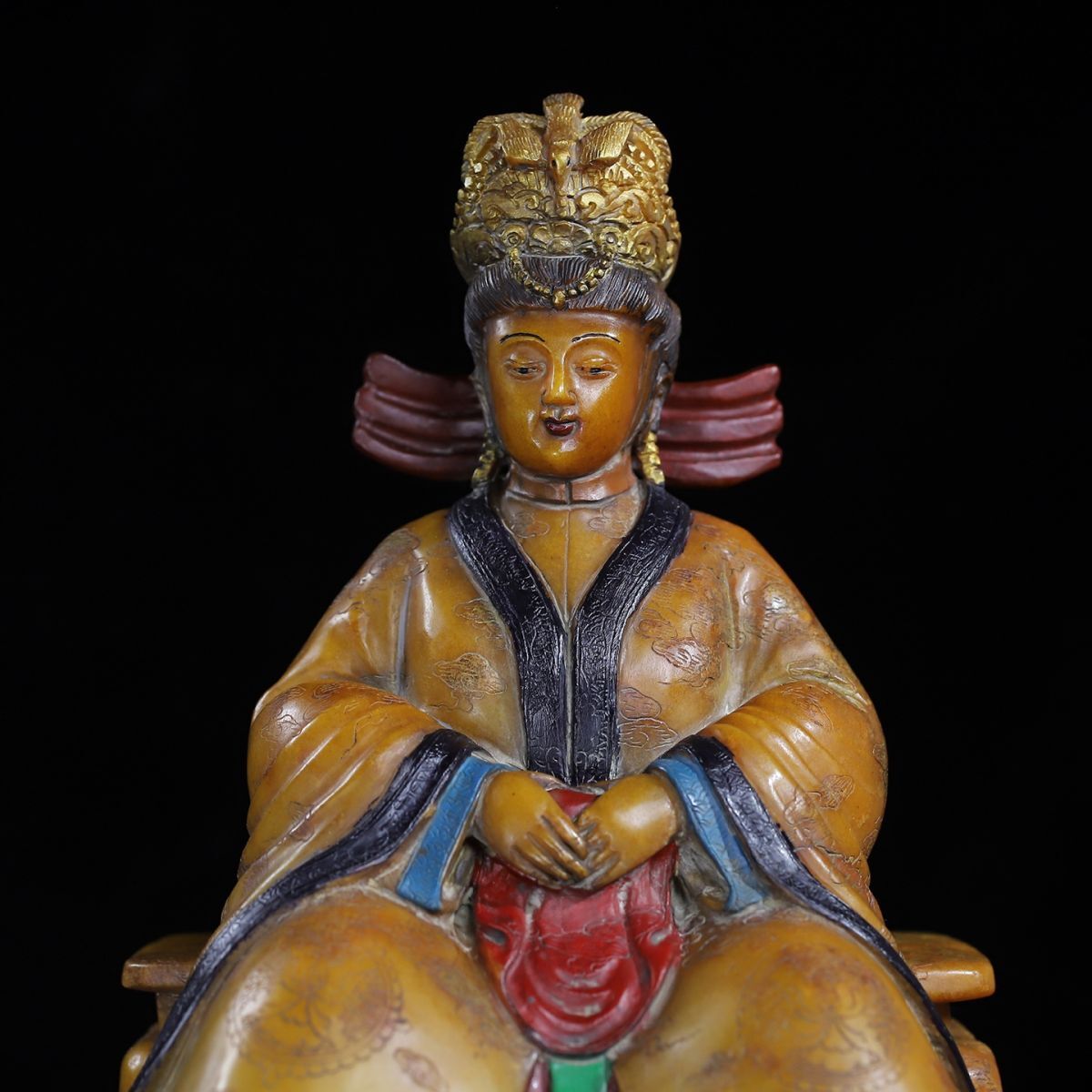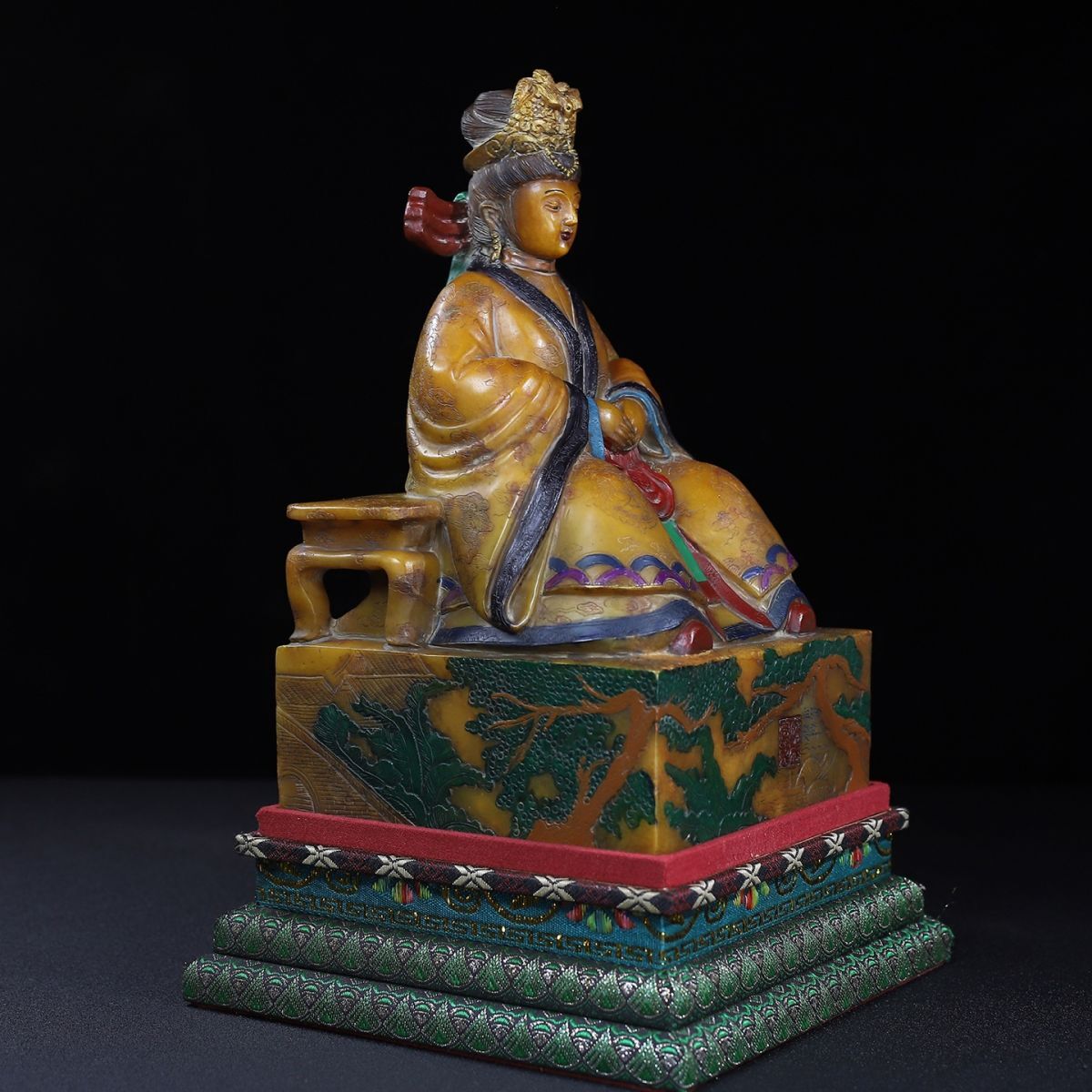 永し 明時代 洪武年製 壽山石 田黄石彫 彩絵馬皇后像 印章 印鑑 極細工 置物擺件 古美術品 時代物 古董品 収集 旧家蔵出 中国唐物 7016g