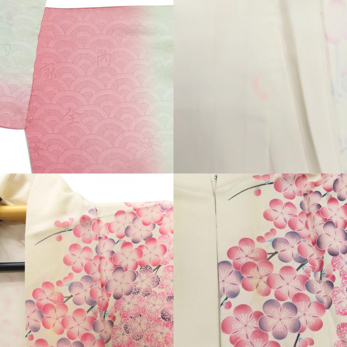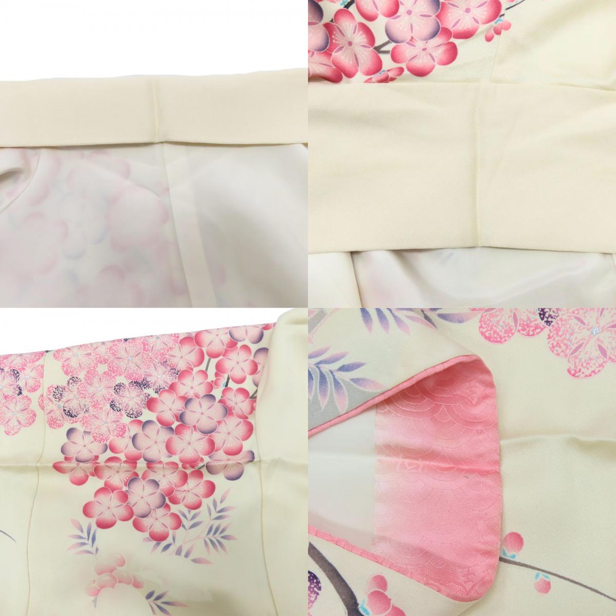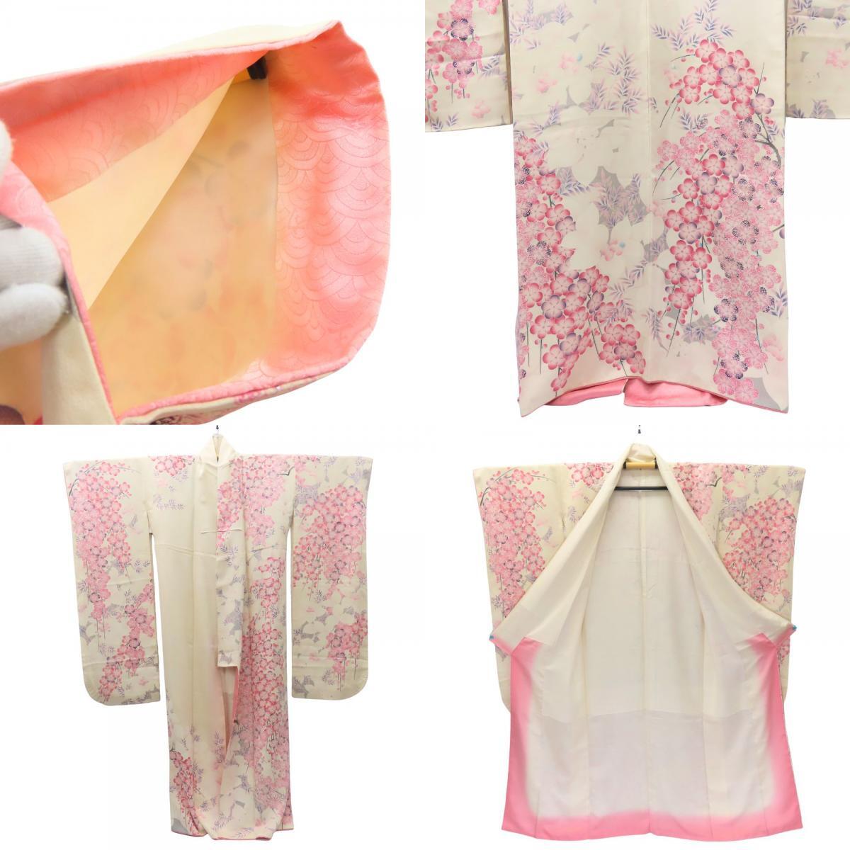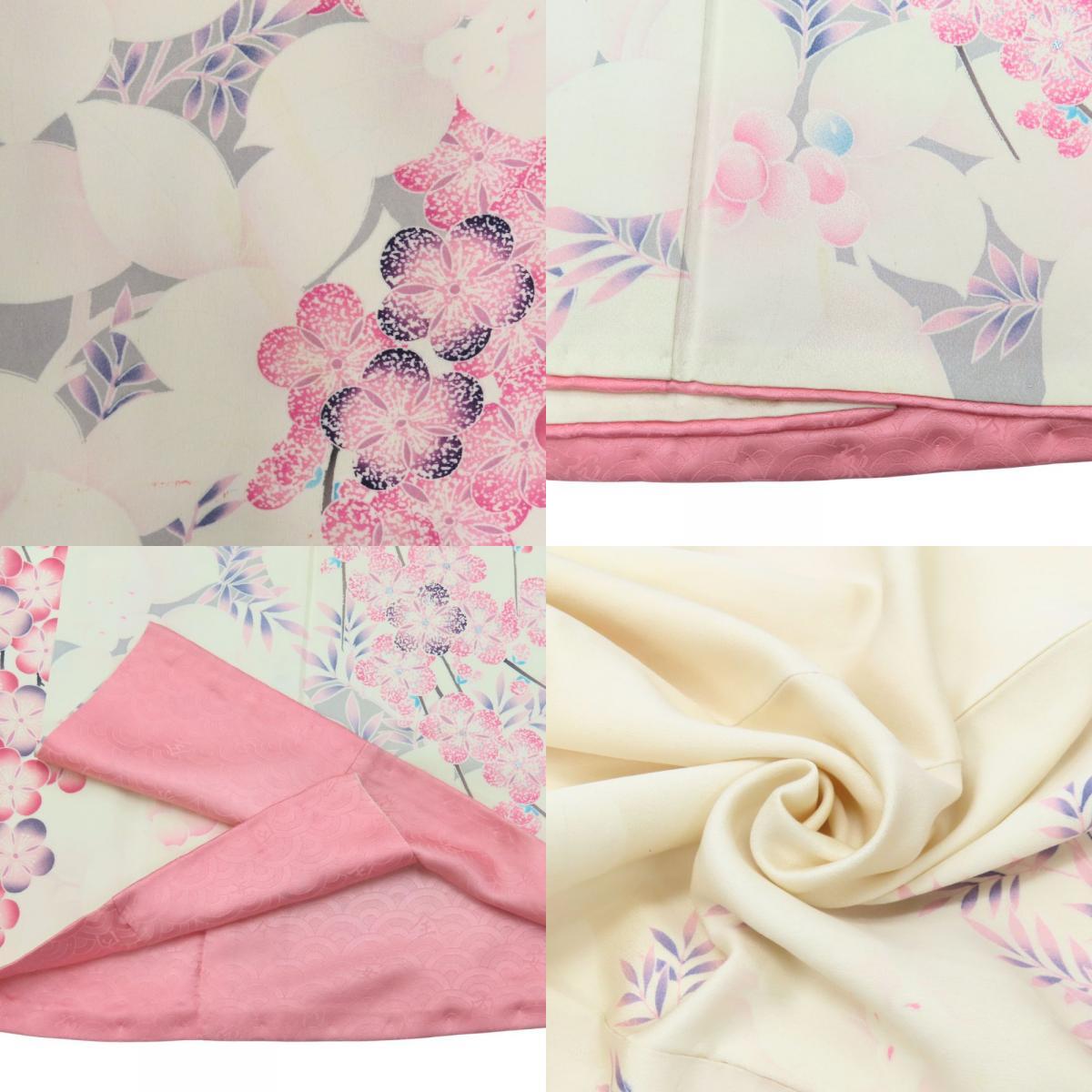 中古 振袖 正絹 オフホワイト ピンク パープル 成人式 和装 呉服 和服 きもの レディース 女性