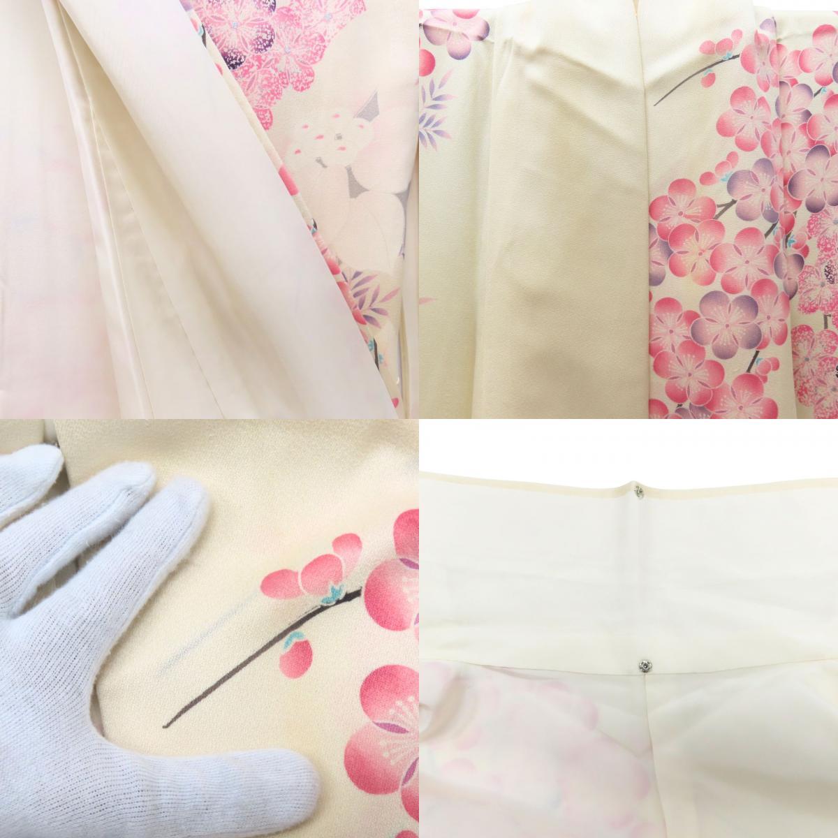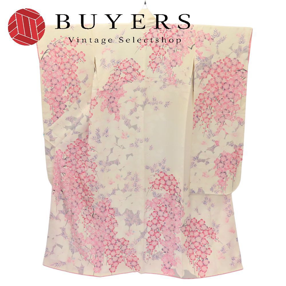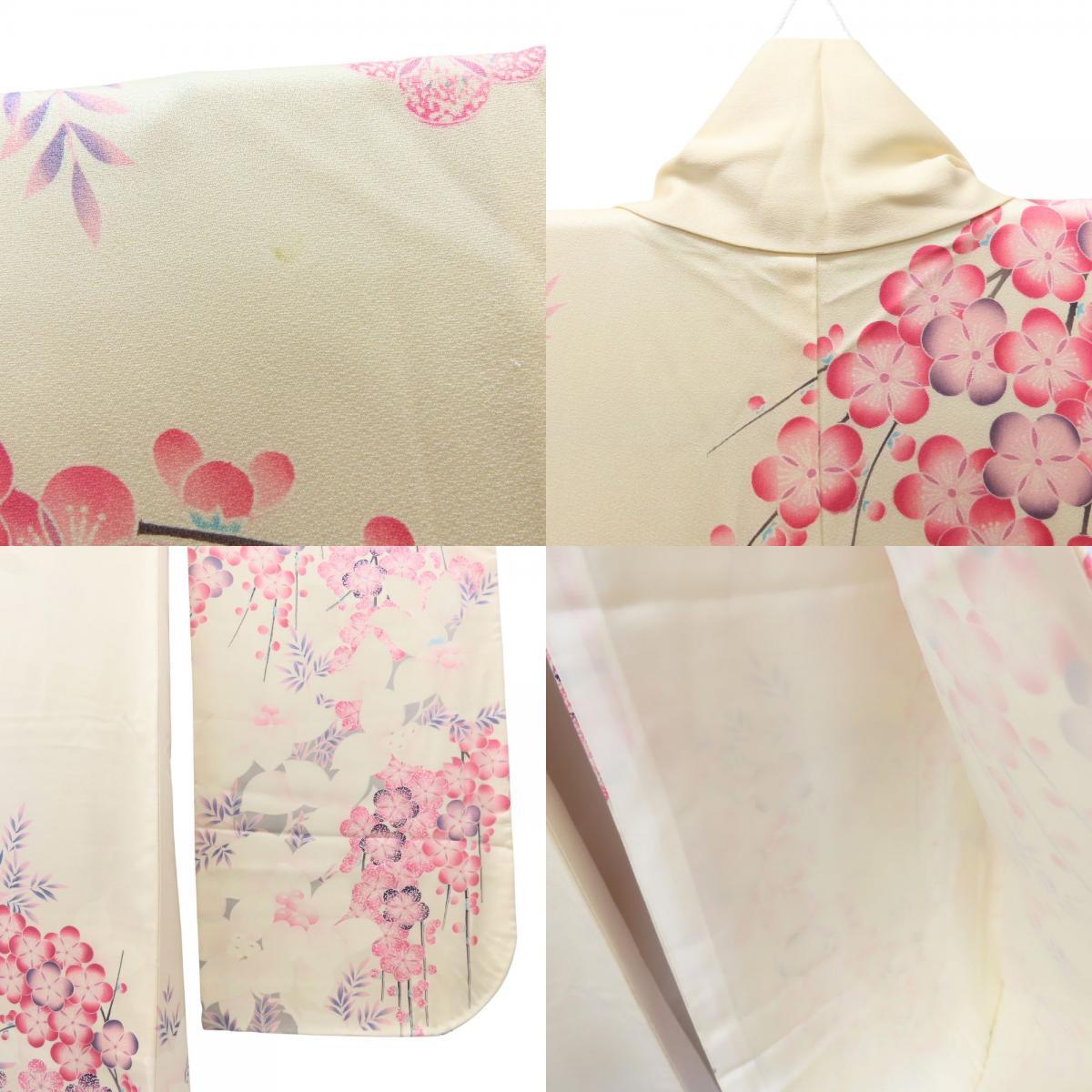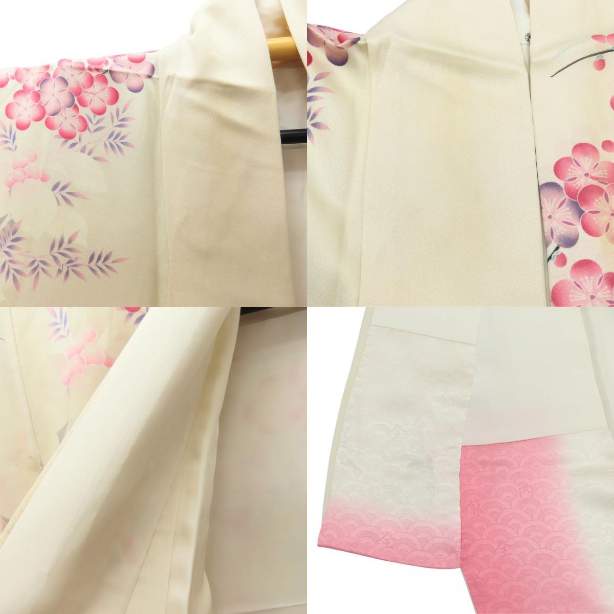 中古 振袖 正絹 オフホワイト ピンク パープル 成人式 和装 呉服 和服 きもの レディース 女性