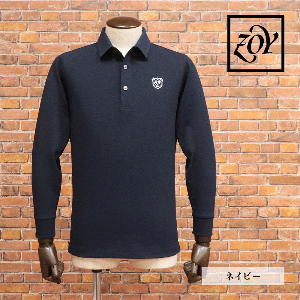 1円/秋冬/ZOY/1(M)サイズ/長袖ポロシャツ 071434003 日本製 ストレッチ鹿の子 ロゴ ゴルフウェア ゾーイ 新品/紺/ネイビー/md430/