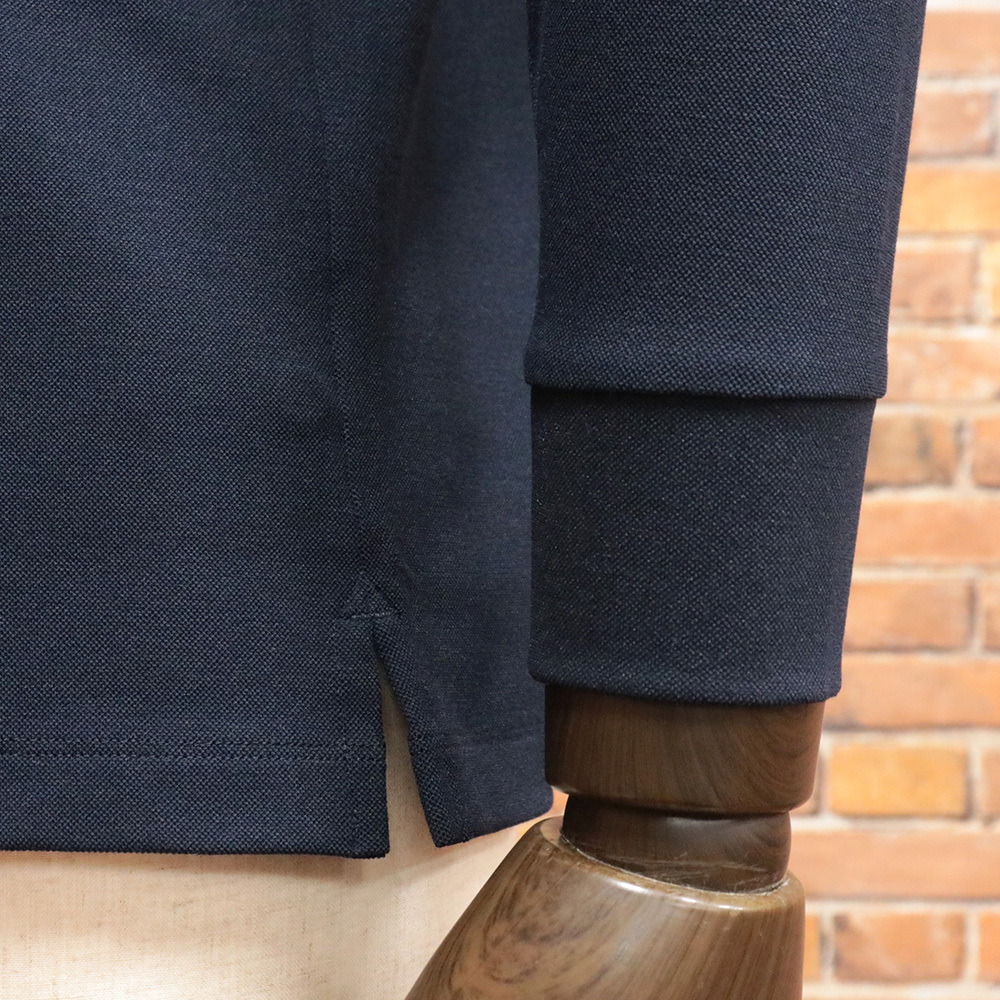 素材には、回収したペットボトルを原料としたリサイクルポリエステルをベースに作られた鹿の子素材を採用。さらにポリエステルスパン糸のフルダルタイプを使用することで、コットンのようなソフトな風合いを実現しています。
