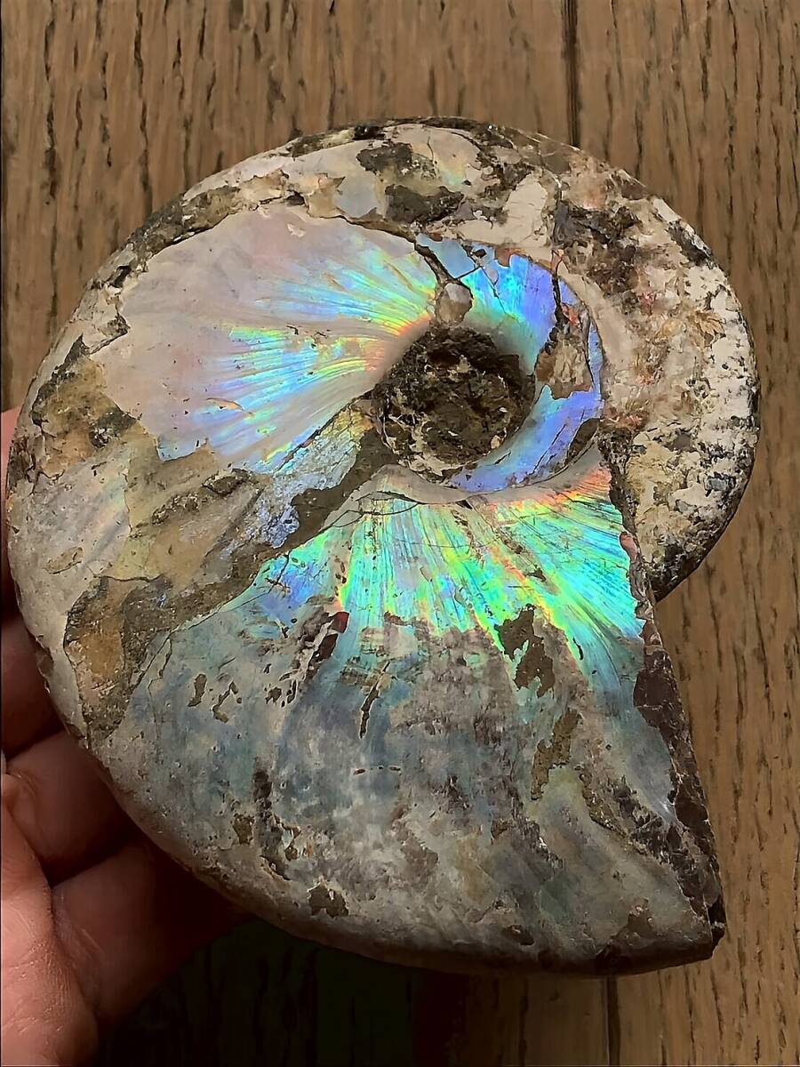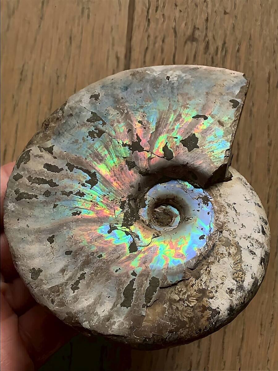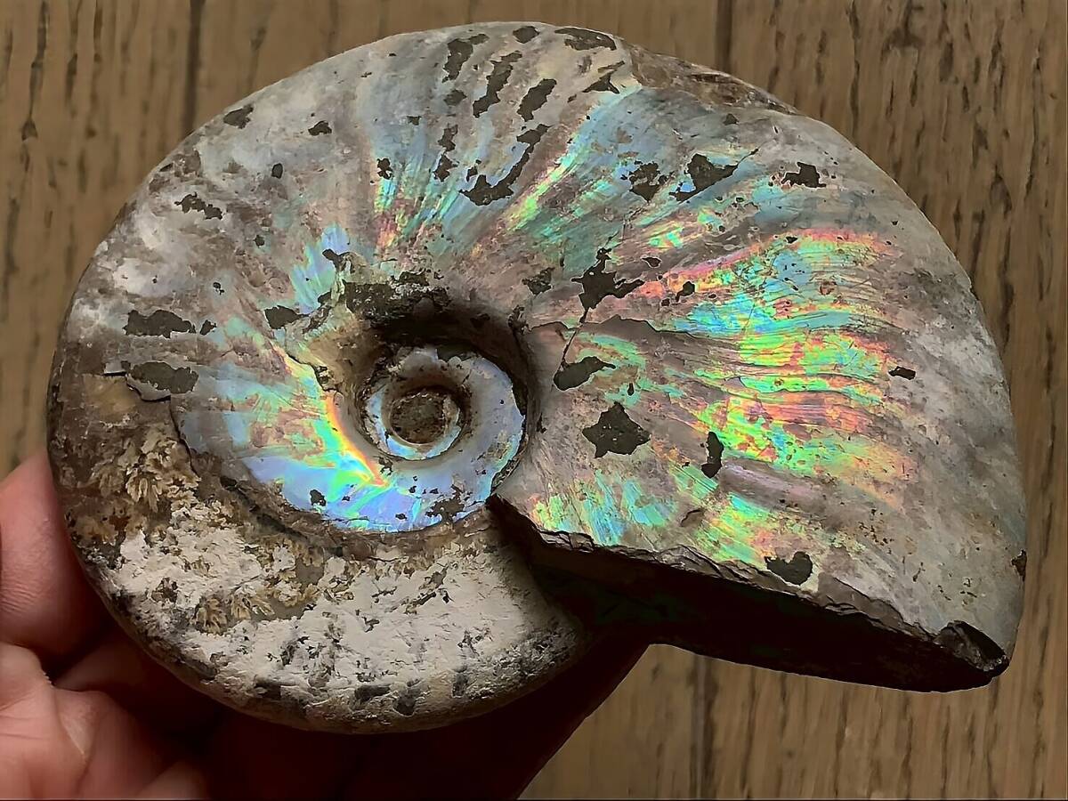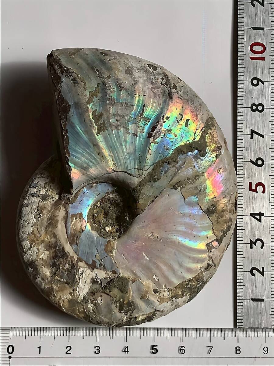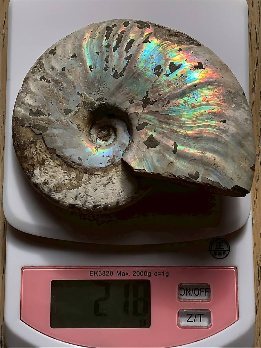 | ☆ | 商品名:マダガスカル産 遊色虹色アンモナイト-青(クリオニセラス) ■アンモナイト仏語名:Ammonite Nacre Cleoniceras ■原産地 マダガスカル、マハジャンガ産 ■サイズ・重さ:218g 10.2cm ■アンモナイトは、古生代シルル紀末期から中生代白亜紀末までの約3億5000万年前後の間を、海洋に広く分布し繁栄していた頭足類の分類群の一つです。 全ての種が平らな巻き貝の形をした殻を持っているのが特徴です。 虹色の遊色効果があるアンモナイトです。殻表面が日光や照明にあたる角度によって青、緑、紫、ピンク等に輝き飽きがきません。カラフルな色彩の個体をお探しの方や、プレゼントとしての化石をお考えの方はこの機会にいかがでしょうか。 ■配送方法:ネコポス ■送料負担:落札者 ■発送元:東京都 ■海外発送:対応不可 ■発送日までの日数:入金手続き当日発送 ●注意事項● ■ まとめて取引は可能な限り対応します。発送方法の変更が不可な場合はお断りする場合がございますが、同梱にて2点目以降送料無料対応いたします。 ■支払期限については原則2日以内にお願いします。 ■ノークレーム、ノーリターンでお願いしておりますので化石商品の性質をよく御理解した上で入札をお願い致します。 ■評価の悪い方の入札は取り消します。 ■商品は天然物につき画像には映らない多少のキズ、欠け等がある可能性、またカメラの性能や光の具合によって現物との色の違いが若干ある場合がございます。写真コメントで説明していますが、伝わらない点についてはご了承願います。撮影には一切照明を使用せず、日中の自然光で撮影をしています。 | ★ | |||||||