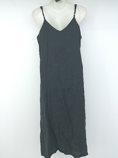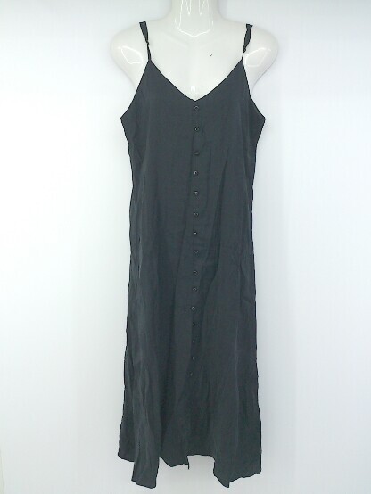 ◇ M nort エムノート Vネック フロントスリット シンプル ロング キャミソールワンピース サイズF ブラック レディース E