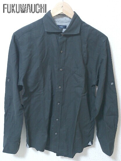 ◇ JUNMEN ジュンメン ホリゾンタルカラー 長袖 シャツ M ブラック #