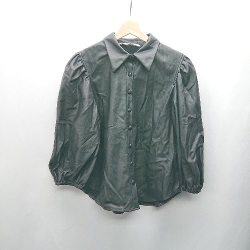 ◇ ZARA ザラ 長袖 レザーシャツ サイズUSA M ブラック系 レディース E