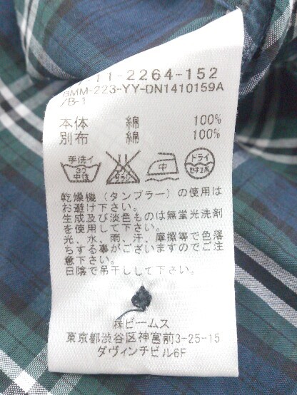 ◇ BEAMS ビームス チェック 長袖 シャツ サイズM ネイビー グリーン メンズ