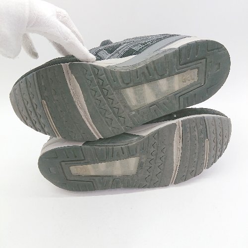 かかと付近に生地の剥がれあり。アウトソールかかと部分にすり減りあり。全体的に使用に伴う汚れ、ダメージあり。