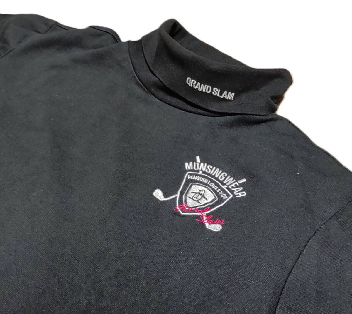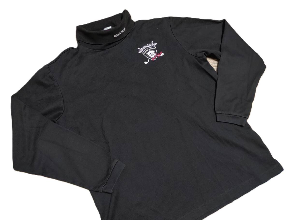 ★マンシング★Munsingwear 襟ロゴ エンブレム刺繍 モックネックシャツ 黒★
