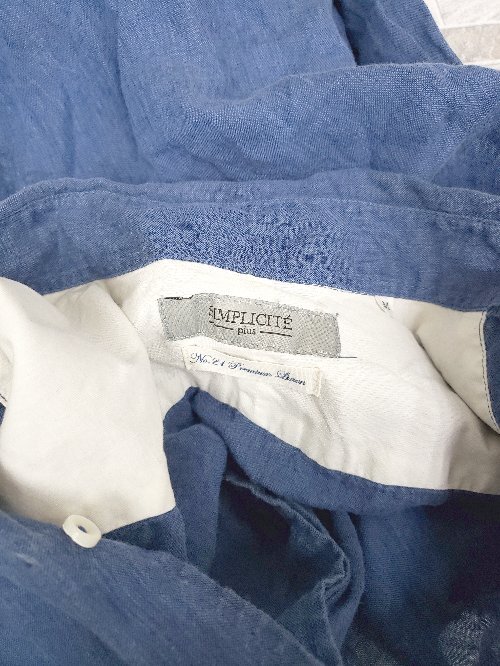 ◇ ⊂ SIMPLICITE PLUS リネン100% 長袖 シャツ サイズ表記なし ネイビー メンズ P