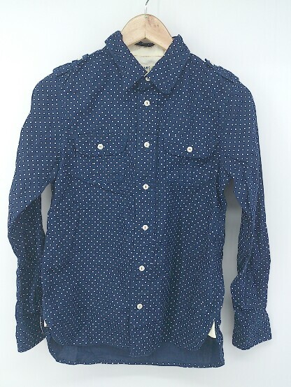 ◇ BEAMS HEART ビームスハート カジュアル ドット 水玉 長袖 シャツ ブラウス ネイビー ホワイト系 メンズ P