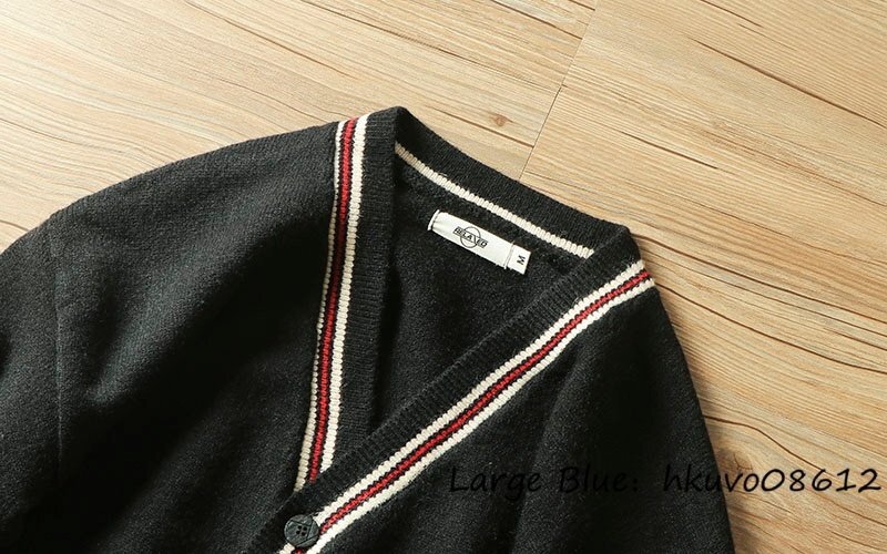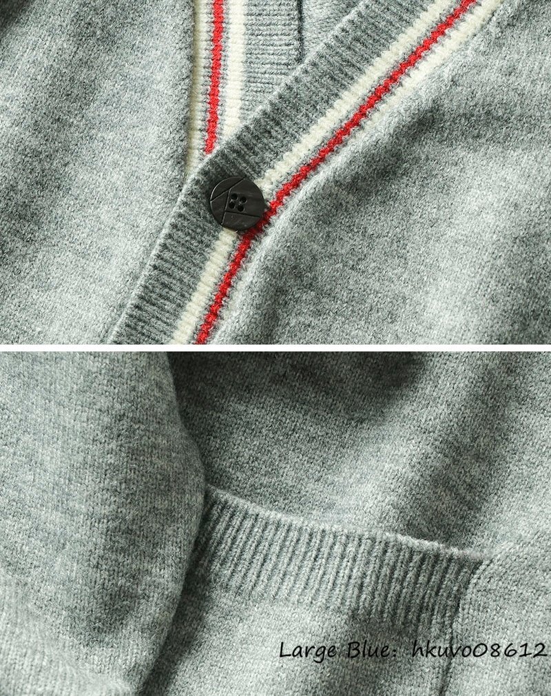 ・クラシックなVネック&ライン入りデザイン:襟元から前立てにかけて施された赤×白のラインがアクセントになり、シンプルながらも個性を引き立てるスタイルに。