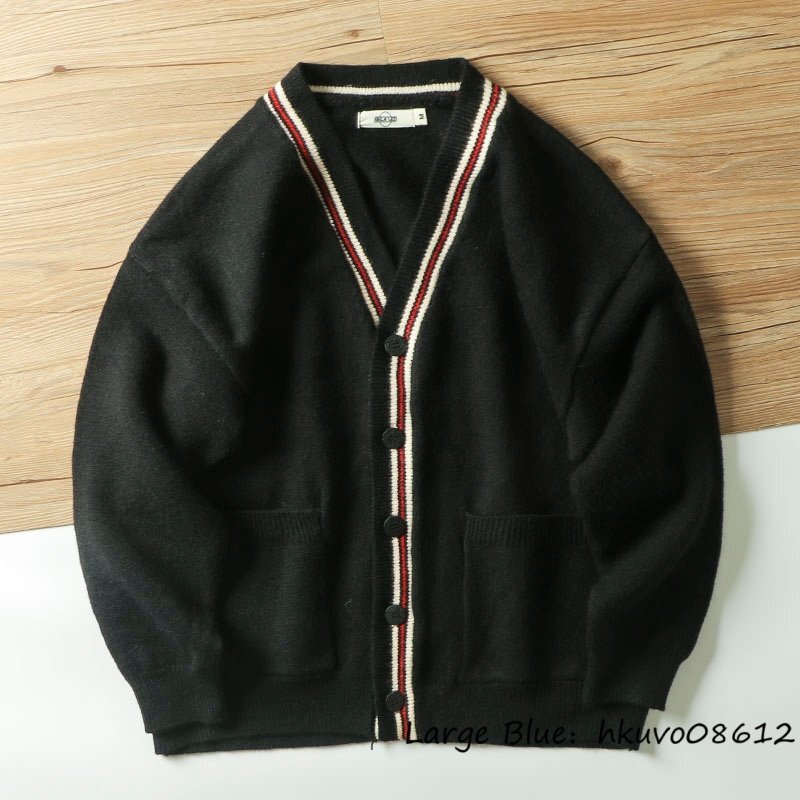 新品特売★メンズ カーディガン 秋冬 厚手 暖かさ ウール混 Vネック ニット セーター アウター 心地良し カジュアル トップス ブラック 4XL