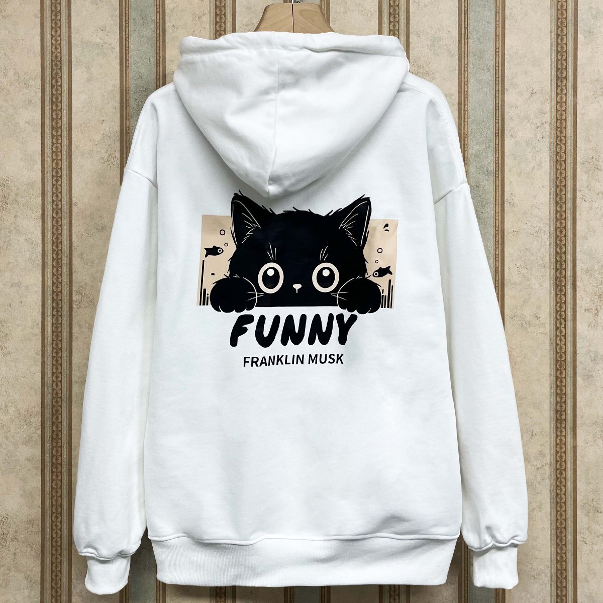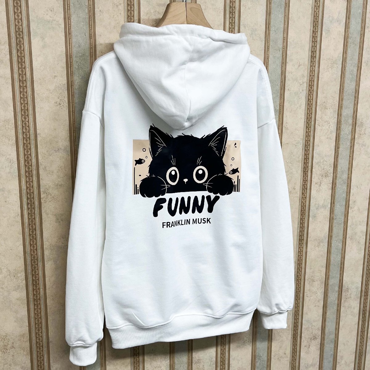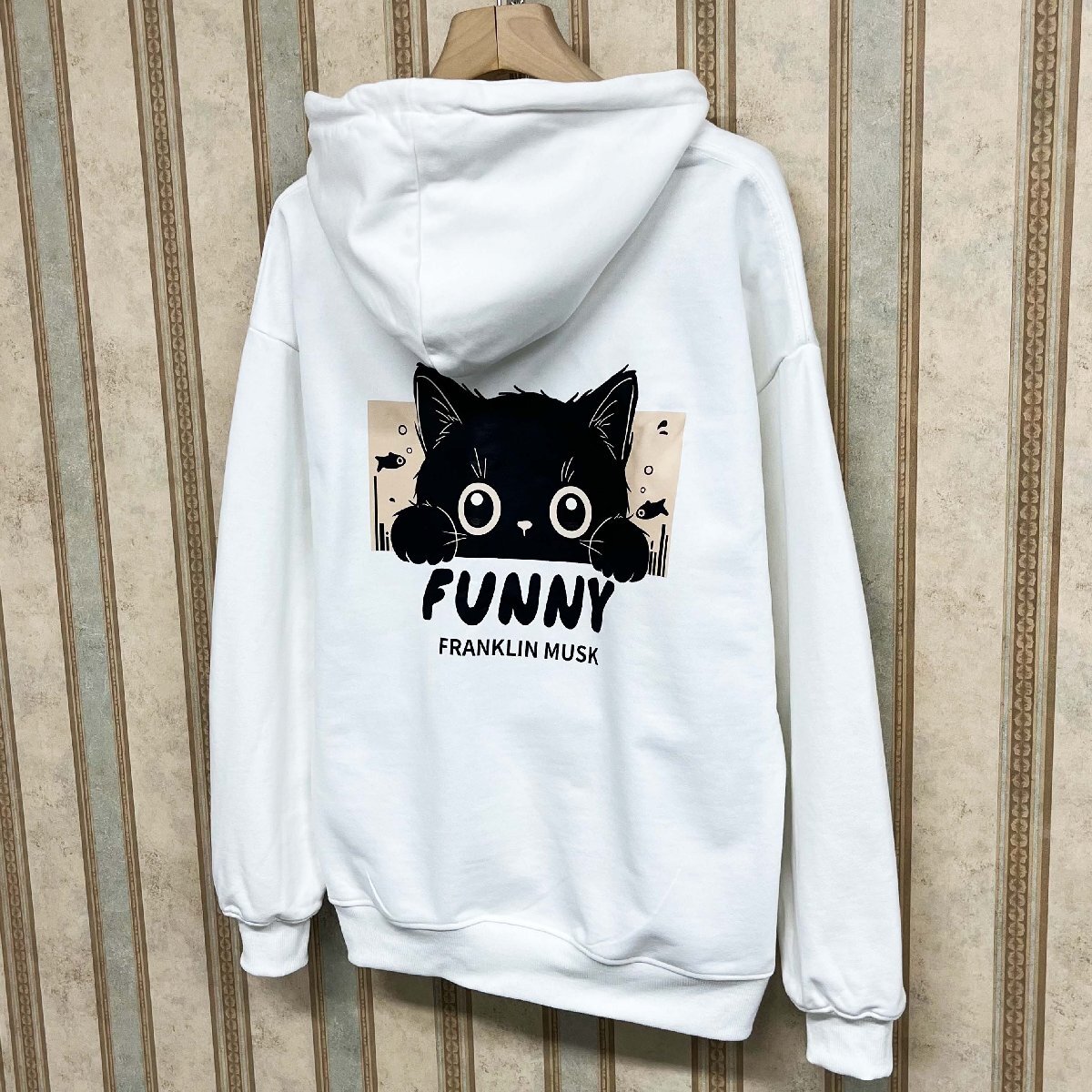 個性 定価4万 FRANKLIN MUSK・アメリカ・ニューヨーク発 パーカー 綿100% ソフト 保温 ネコ 可愛い カットソー カジュアル 男女兼用 秋冬 サイズ3