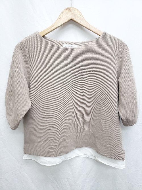 ◇ ⊂ green label relaxing UNITED ARROWS レイヤード風 五分袖 ブラウス カットソー ベージュ レディース P