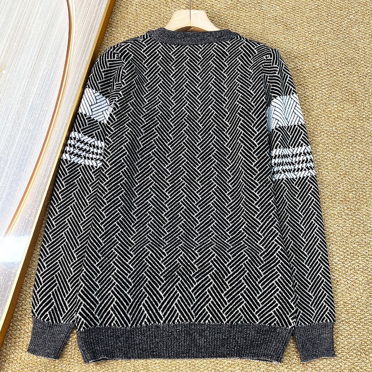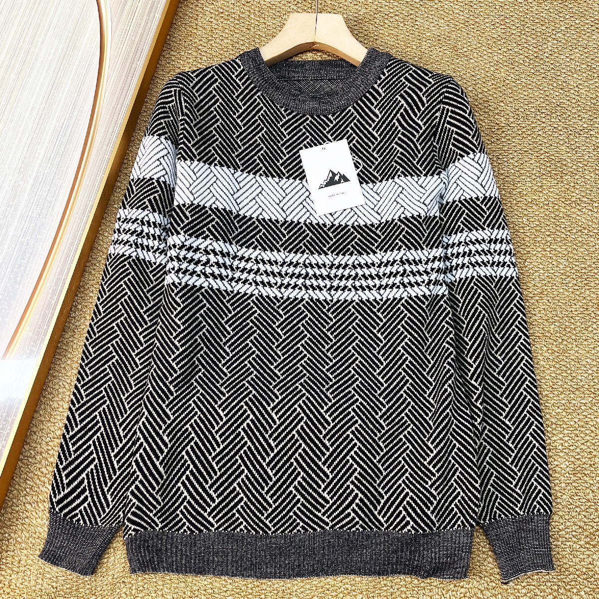 セーター イタリア製造 ウール混 暖かい ソフト 保温 クールネック ストライプ柄 カットソー トレーナー トップス カジュアル 秋冬 SIZE:L