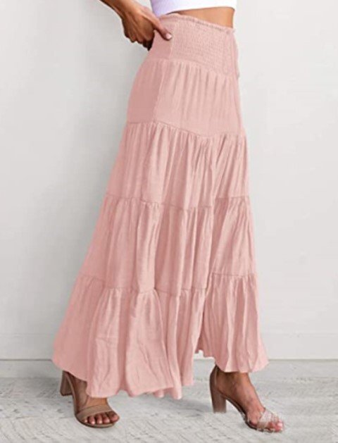 ・ふんわりとしたシルエットで動くたび軽やかに揺れるティアードデザイン。ボディラインを拾わずおなか周りや下半身をカバーしてくれます。