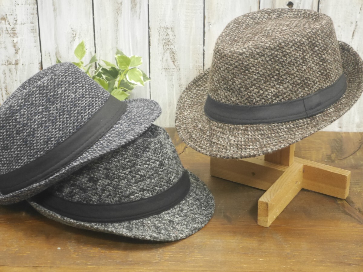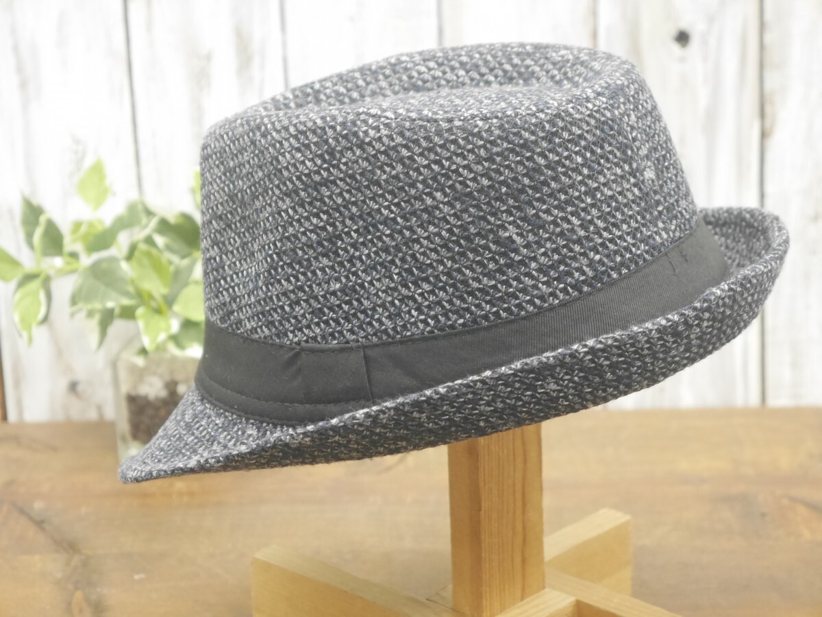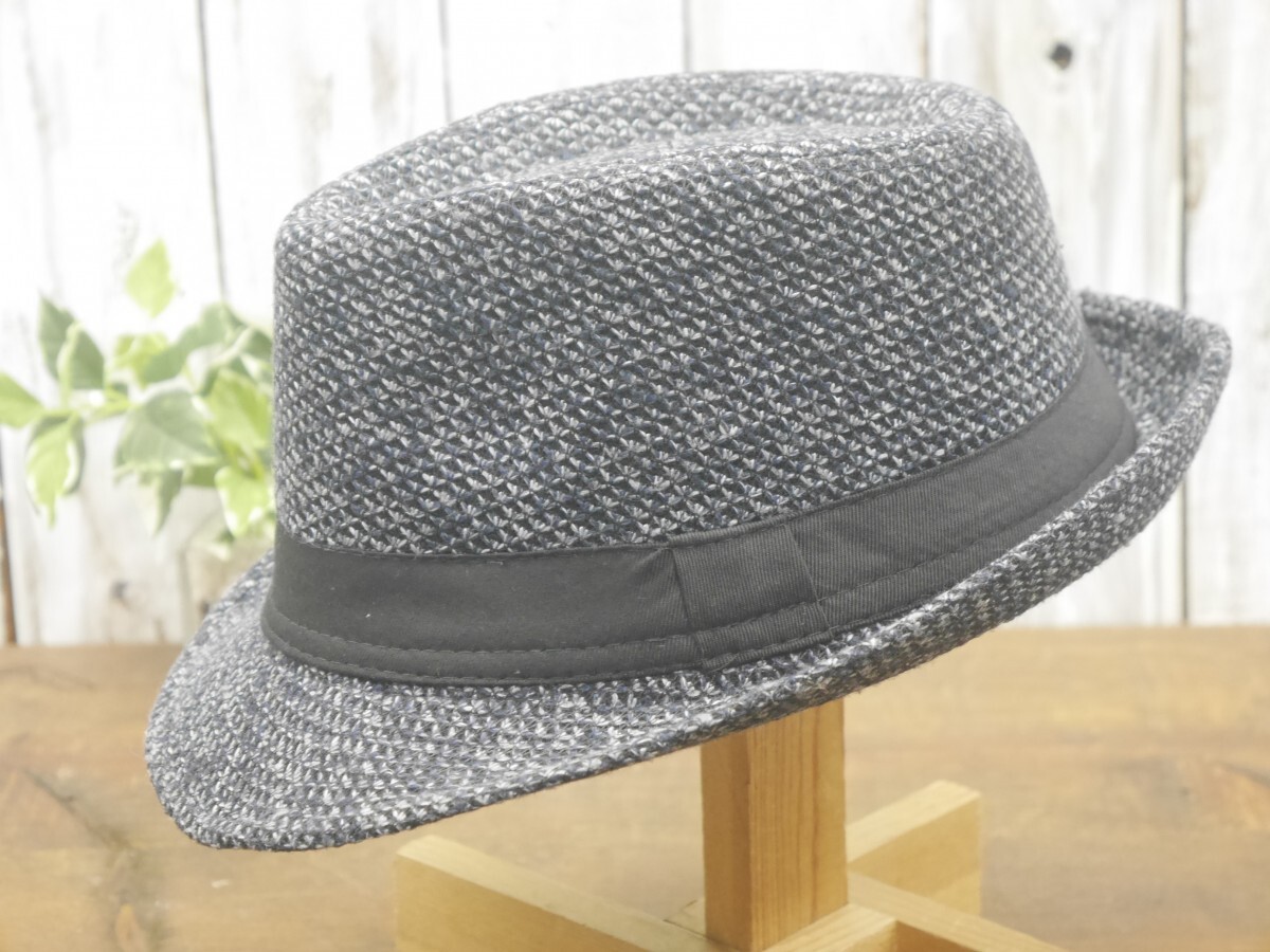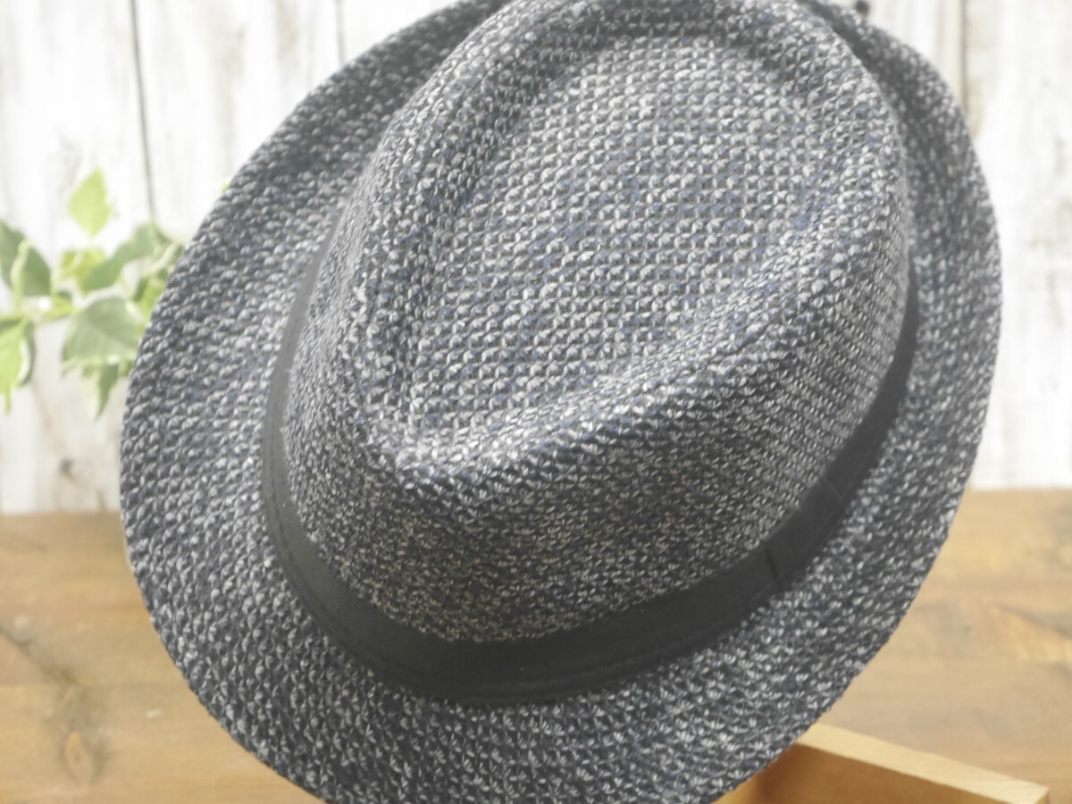 フェドラハット ツイード ネイビー 男女OK 最安送料\450 メンズ レディース 中折れハット パナマ ボルサリーノ