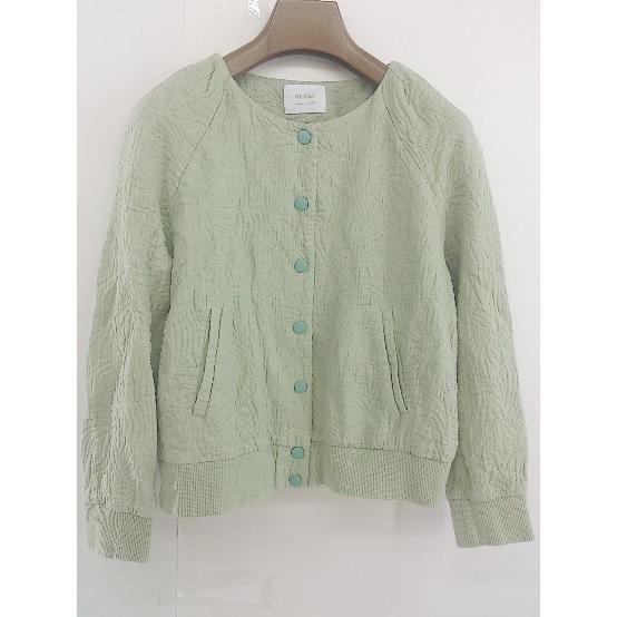 ◇ RED SEAM レッドシーム 総柄 長袖 ノーカラー ジャケット サイズONE ライトグリーン レディース