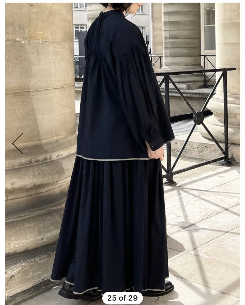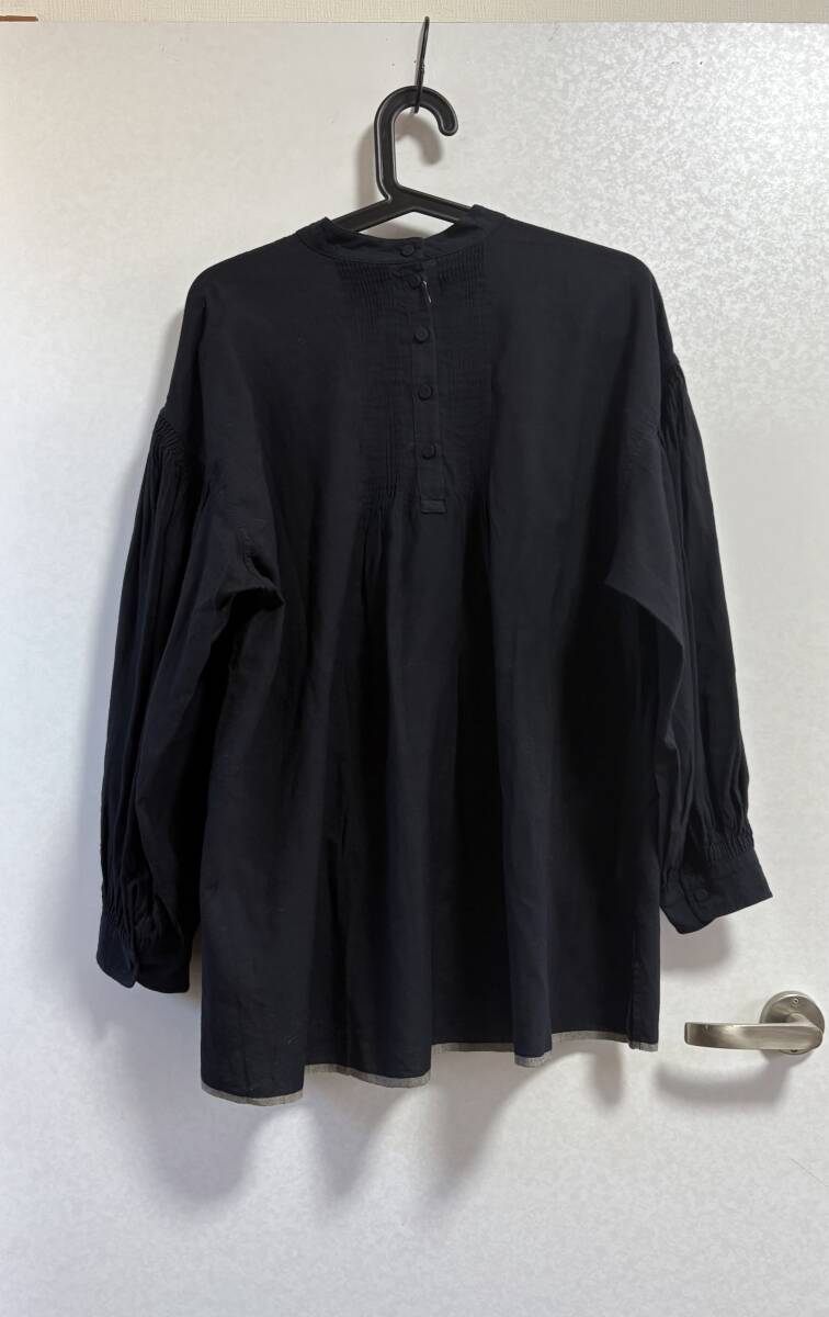 メゾンドソイルのスタンドカラーの後ろ開きのピンタックブラウスです。