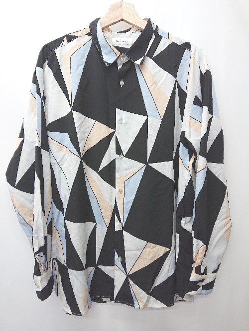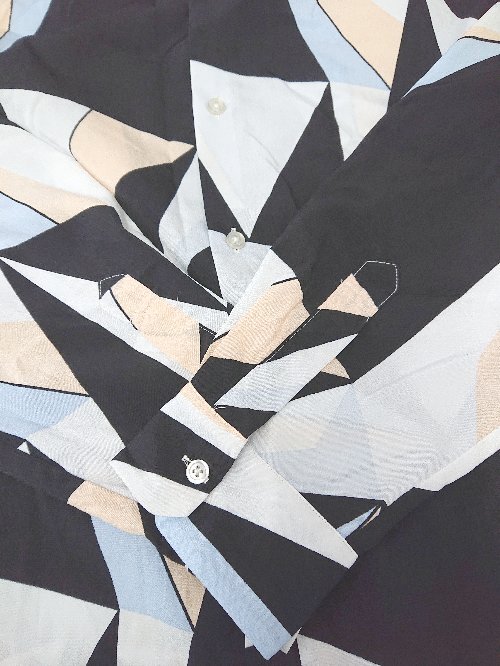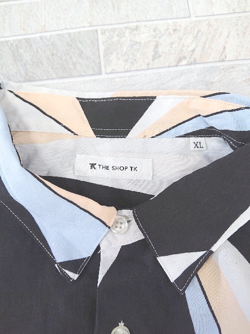 ◇ Θ THE SHOP TK 総柄 長袖 プリントデザインレギュラーカラーシャツ サイズXL ホワイト ブラック ブルー系 メンズ E