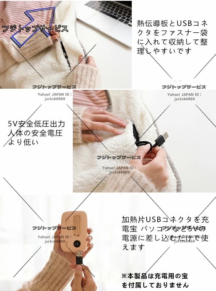 ご注意:本製品は5VUSB充電の設計で、USB給電電力が限られているためポケット発熱エリアはポケット部分のみです。こ了承ください。