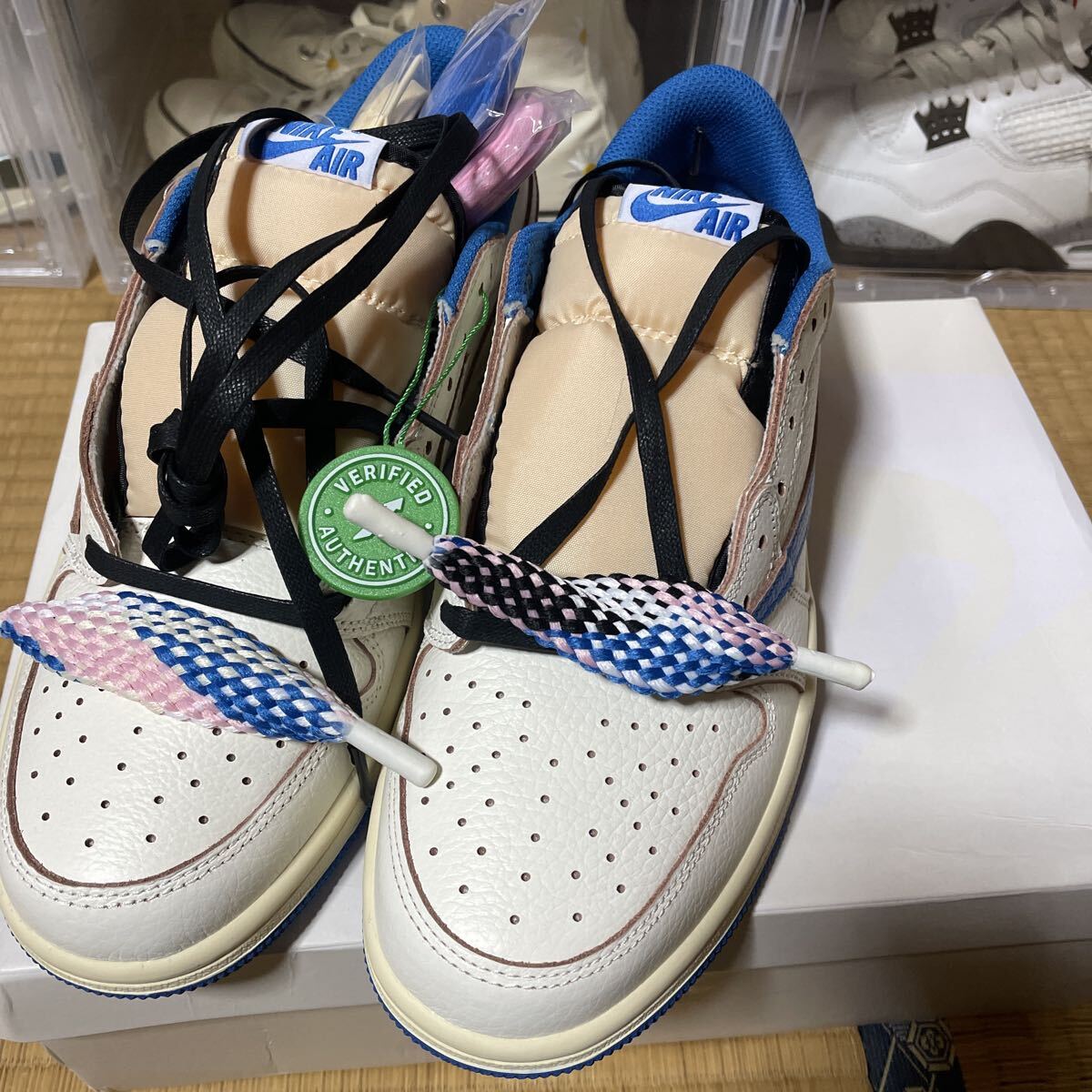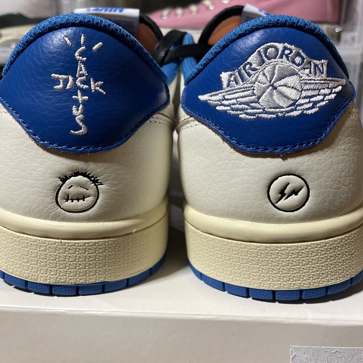 TRAVIS SCOTT × FRAGMENT DESIGN × AIR JORDAN 1 RETRO LOW OG SP "SAIL MILITARY BLUE" DM7866-104 (セイル/ブラック/モスリン/ミリタリーブルー)