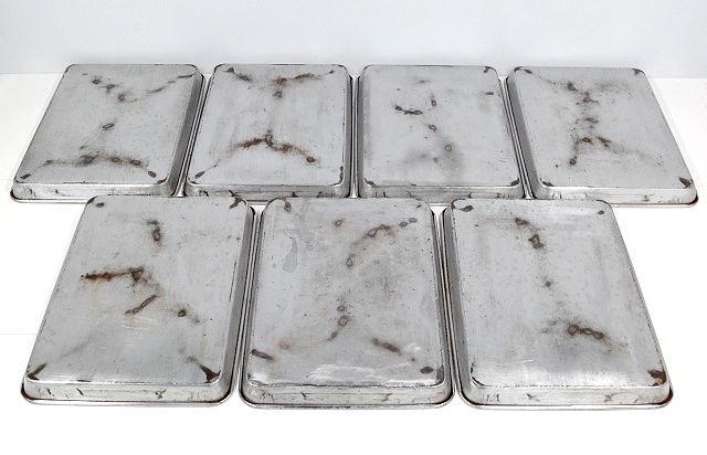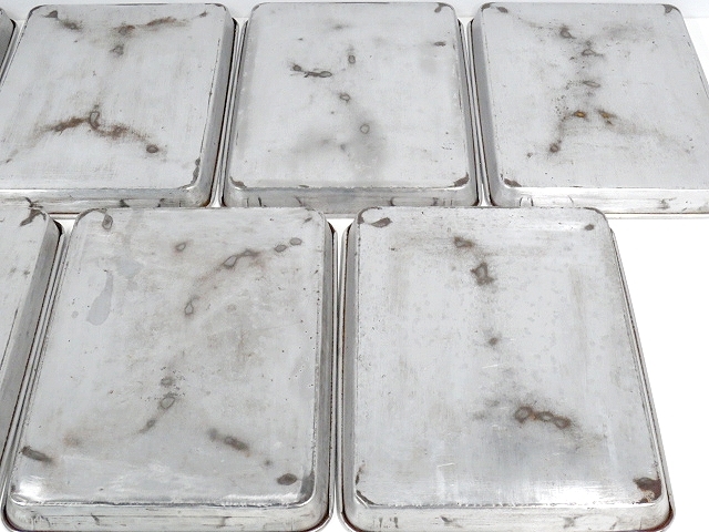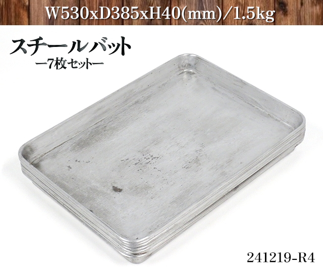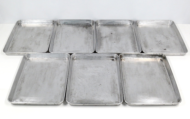 | 【商品説明】 ★スチール製角バット7点セットです。 ★食材の仕分け,保存容器,調理成形用としてご利用いただけます。 ★材質は鉄を主成分とした『スチール系』と思われます。 ★表面はメッキ加工により、サビを防いでいると考えられます。 【状態:中程度★★★☆☆】 『◎』現状渡し品:ノークレームノーリターンです。 『※』写真や説明文を必ずご確認の上ご検討ください。 『△』中古品につき[シミ][すり傷][サビ][歪みや凹凸]等の使用感がございます。 『※』写真に載せきれない部分にも同様の使用感がございます。 『商品仕様』