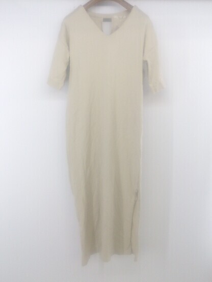◇ PAGEBOY ページボーイ ALICIA Vネック スリット ノースリーブ 膝下丈 ワンピース サイズ F ベージュ レディース P