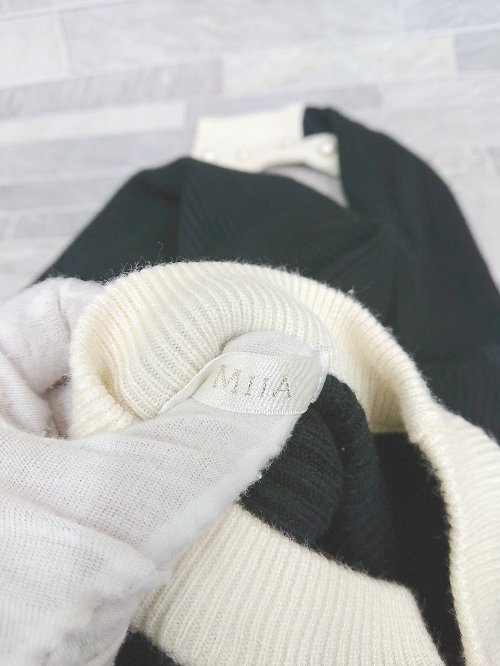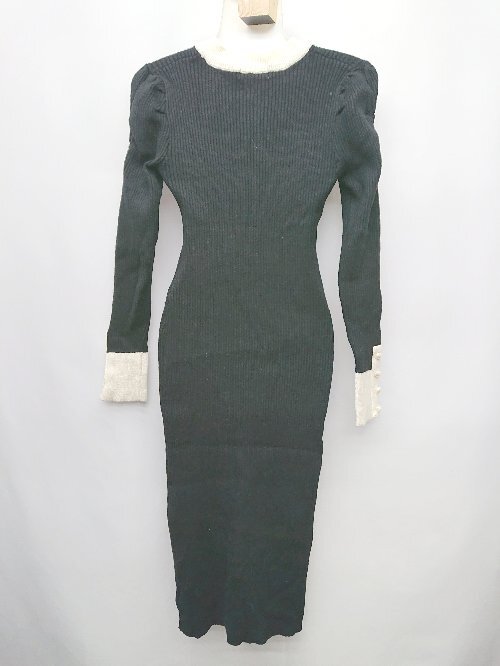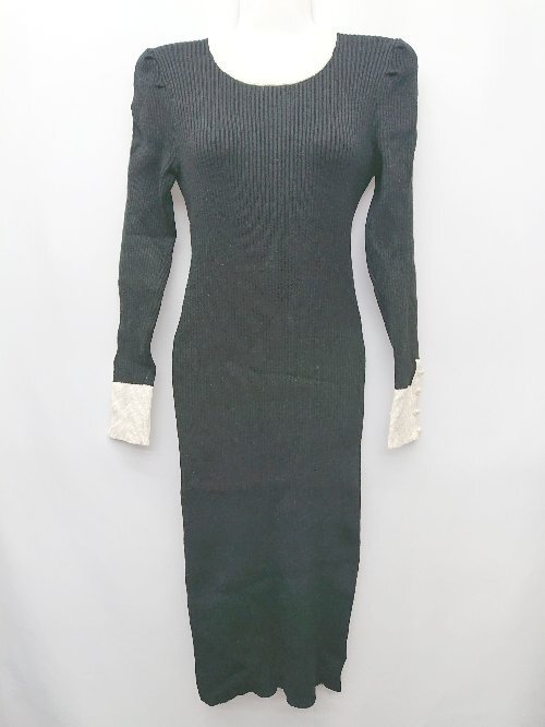 ◇ ⊇ MIIA ミーア 長袖 膝丈 ニット ワンピース サイズM ブラック レディース P