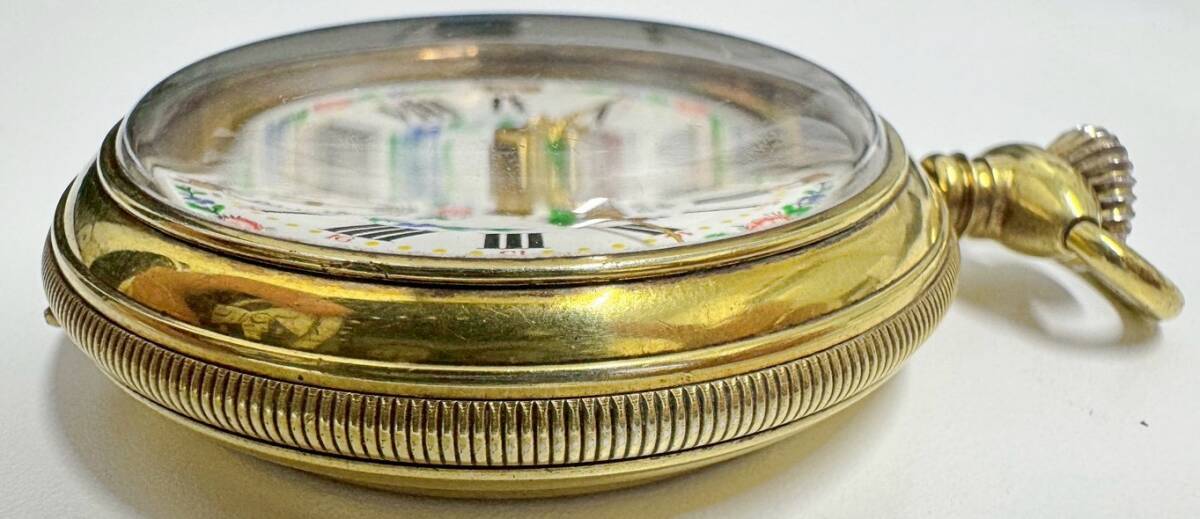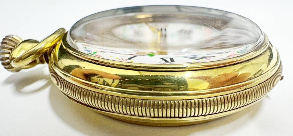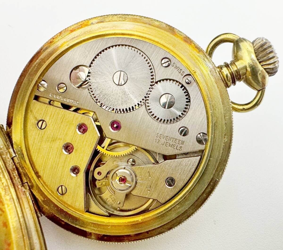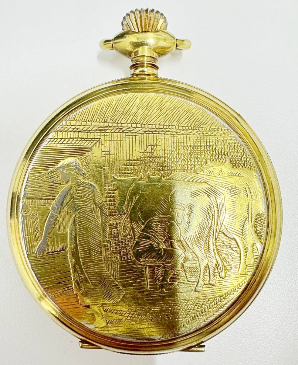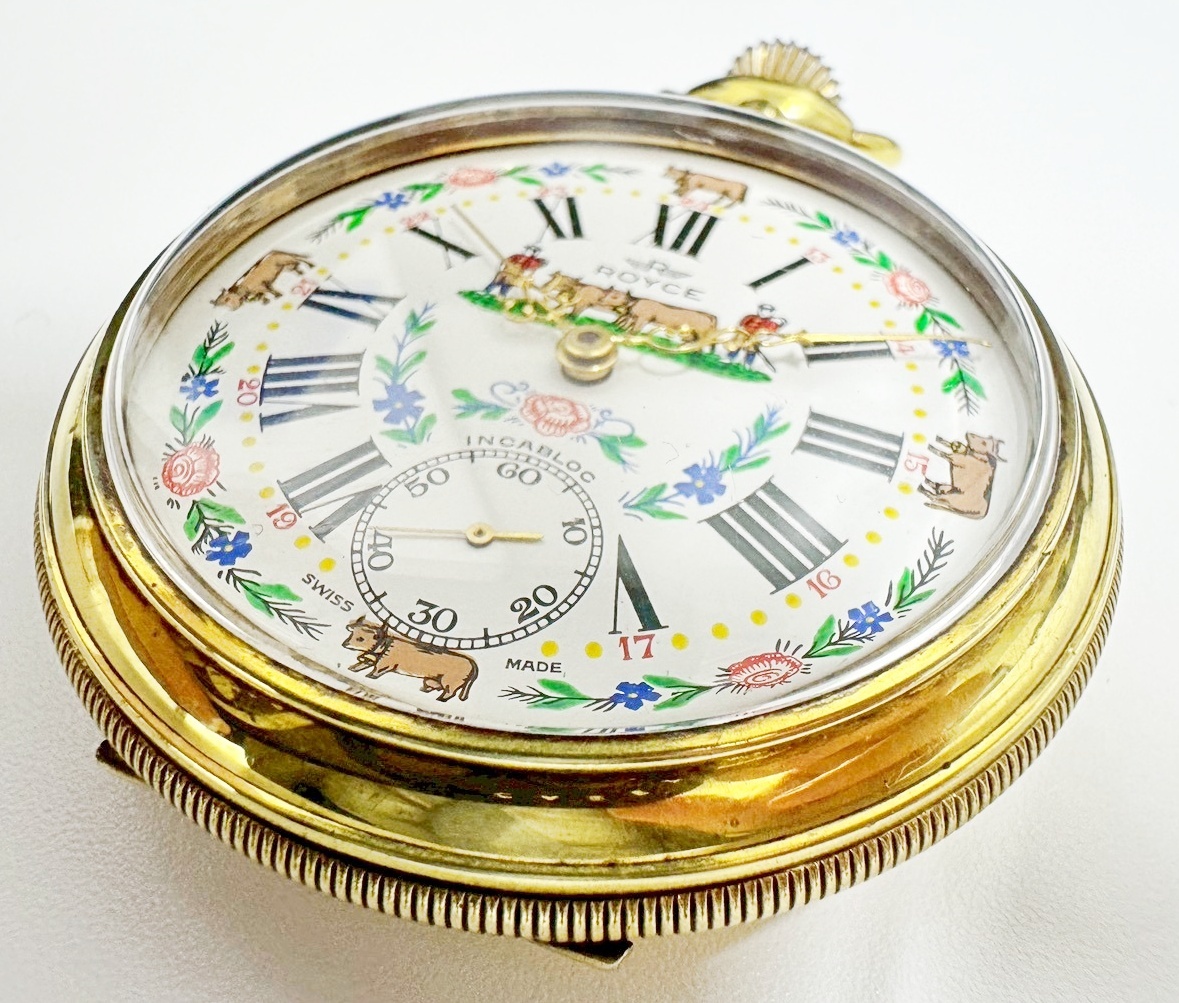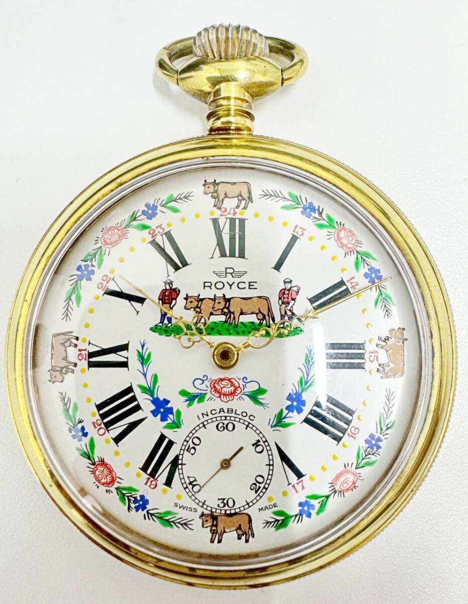 1円~ ROYCE ロイス 手巻き 懐中時計 スモセコ INCABLOC 牛柄 白文字盤 稼働品