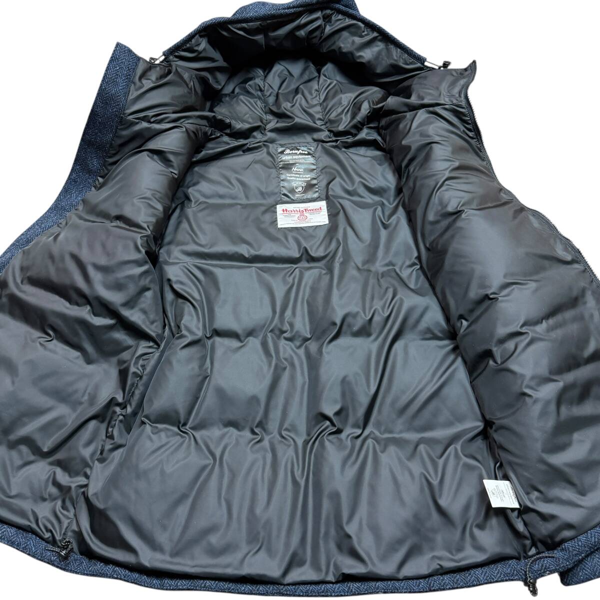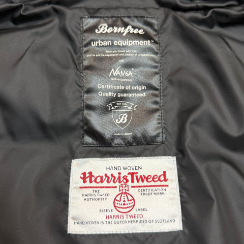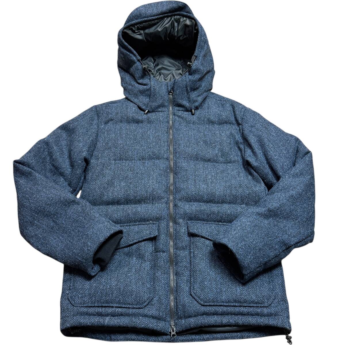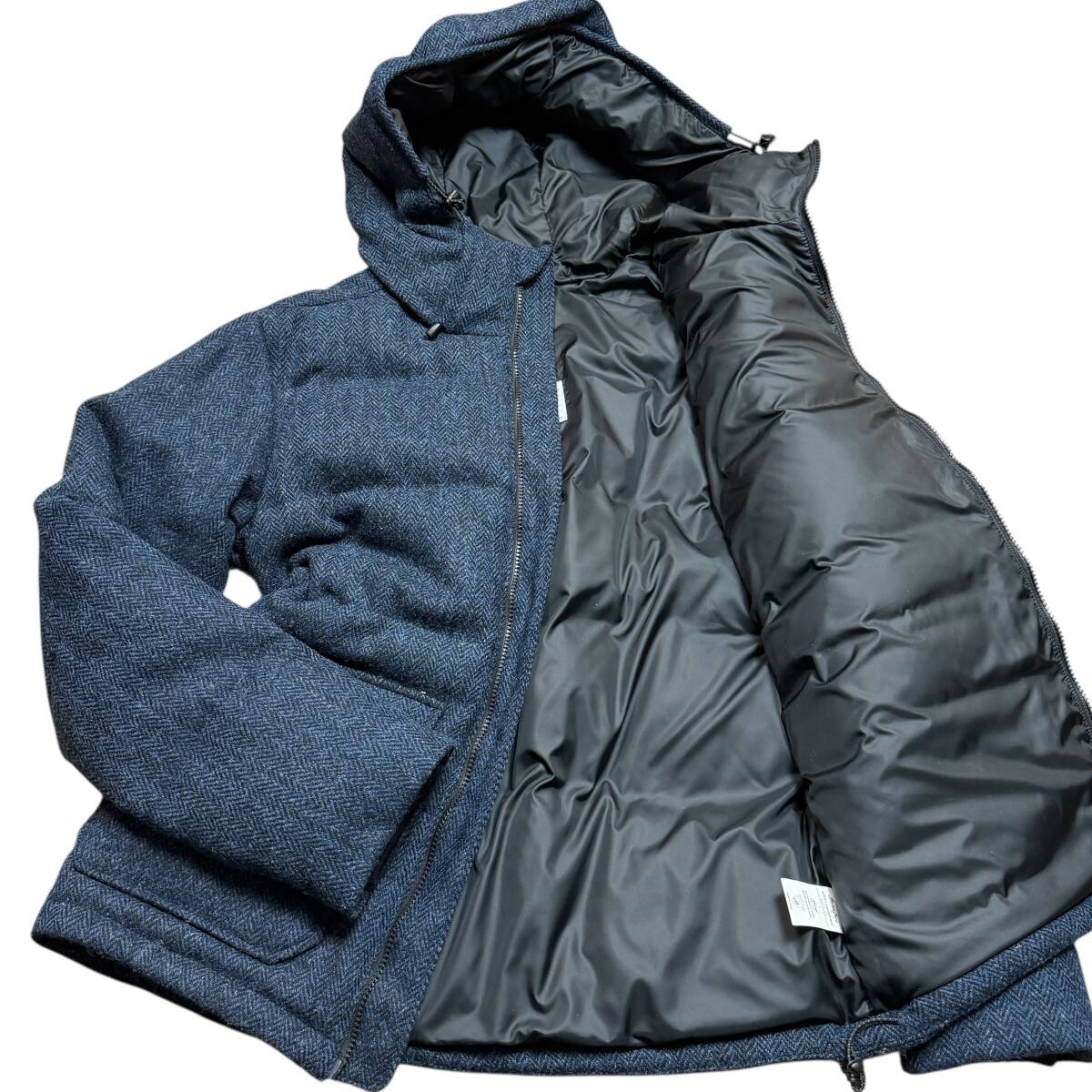3687 超希少 born free NANGA HARRIS TWEED ダウンジャケット ツイード ボーンフリー ナンガ ハリスツイード ヘリンボーン ネイビー系