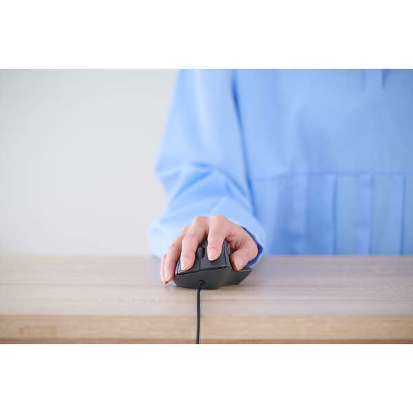 | ●高さと角度にこだわったエルゴノミクス形状で、 手のひらから手首、腕までリラックスした姿勢で使えます | |