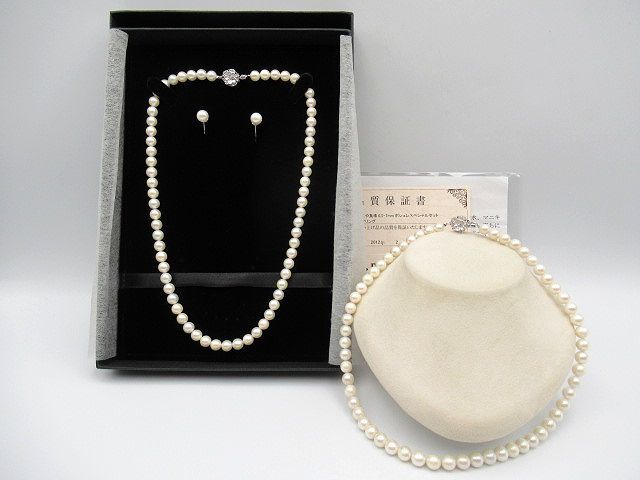 | ◇中古良品◇アクセサリー◇ あこや真珠 パールネックレス2本&イヤリングセット 総重量:約61.34g ポシュレスペシャルセット あこや真珠6.5-7mm 管理番号:YNU 【内容】 あこや真珠 6.5-7mm ポシュレスペシャルセット ネックレス① 首周り:約42㎝ ネックレス② 首周り:約37㎝ イヤリング 品質保証書・・・1 真珠のお取り扱いについて・・・1 保管箱・・・1 【状態】 店舗買取品/中古品になります。 中古品ですが使用感が特に感じられず比較的良品ですが 多少の保管キズや僅かな使用感はございますので予めご了承ください。 詳しい状態は写真でご確認下さい。 ※商品の状態の説明はあくまで出品者の主観に基づいた説明です。 ※店舗保管品です。 ※新品の様な完璧な状態では御座いません。 ※ご理解頂ける方のご入札をお願い致します。 ご入札前に必ず全文をお読みになり、 お客様が十分にご納得された上でのご入札、 ノークレーム・ノーリターンでお願い致します。 入札の取消は行っておりませんのでご注意下さい。 (ご入札された時点で同意頂いたものとします) ※画像のものがすべてになります。 ※店舗保管品の為、多少のスレキズ等ある場合が御座います。 ※専門知識が無いため質問にお答えできない場合が御座います。 ※素人検品・撮影の為写真に写り切らない汚れ・キズがある場合が御座います。 ※新品の様な100%完璧な状態では御座いません。 ※念入りに検品しておりますが見落としがある場合が御座います。 ※神経質な方、完璧をお求めの方は入札をお控え下さい。 ※御理解頂ける方のご入札をお願い致します。 ※当店はまとめてお取引には対応致しません。 全て単品でのお取引となります。 ※同梱は行っておりません。 ※商品管理上、取り置きは致しませんのでご了承下さい。 | |||