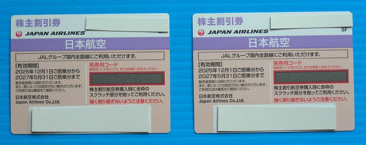 送料無料 日本航空 JAL 株主割引券 2枚セット 2027年5月31日搭乗分まで